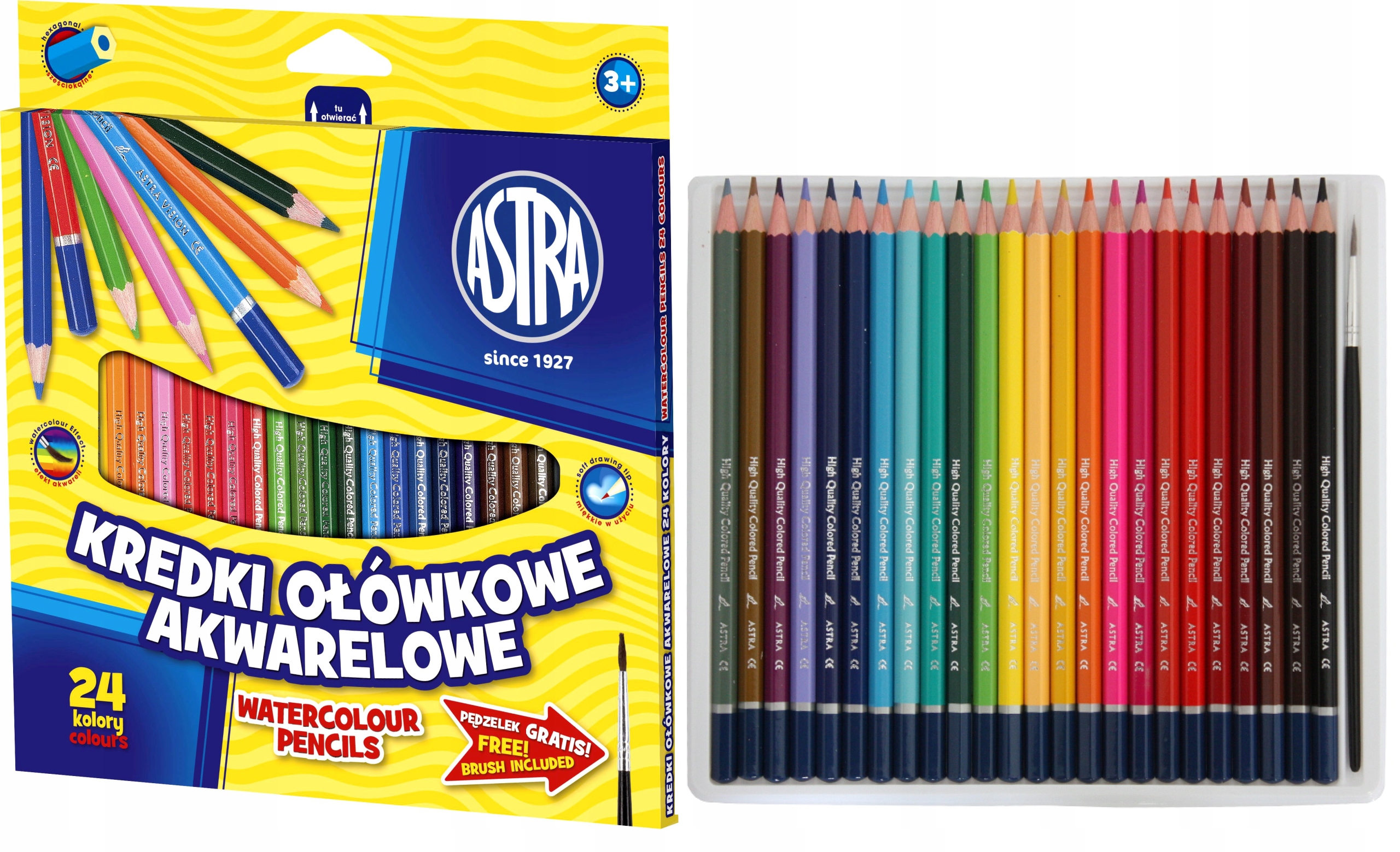 Kredki ołówkowe ASTRA to klasyka, która od lat cieszy się zaufaniem uczniów, nauczycieli i rodziców. W zestawie znajdziesz 24 wyraziste, nasycone kolory, idealne do rysowania, kolorowania, cieniowania oraz wszelkich prac plastycznych. Kredki wykonane są z wysokiej jakości drewna, dzięki czemu łatwo się temperują i są odporne na łamanie. Miękka, dobrze kryjąca grafitowa końcówka pozwala na płynne prowadzenie kreski i komfort pracy — zarówno dla dzieci, jak i dorosłych.