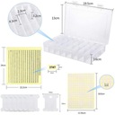 Упаковка: 150 шт. Белые катушки зубной нити, 2 шт. 24 коробки для хранения с регулируемые разделители, лист наклеек с цветными номерами и лист наклеек.