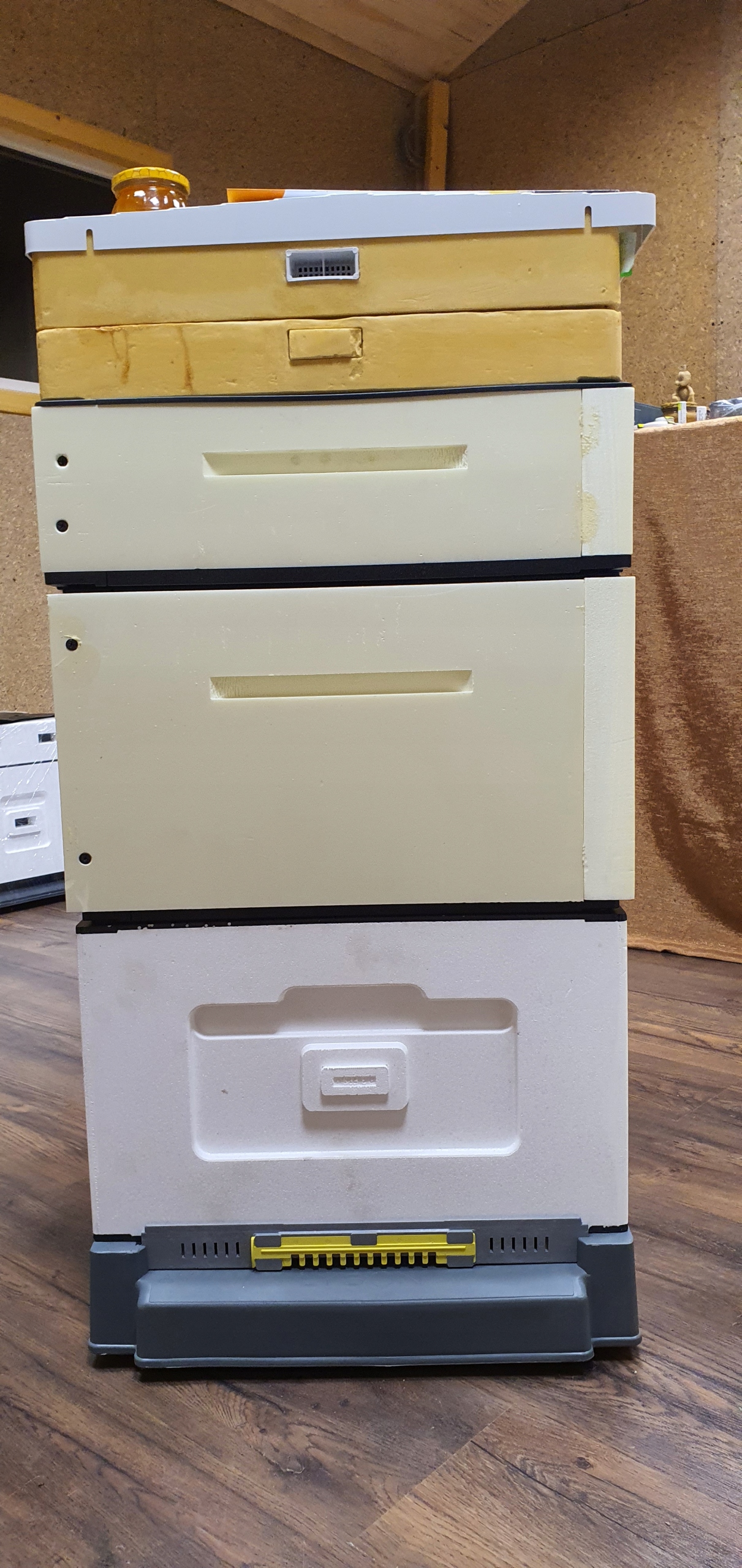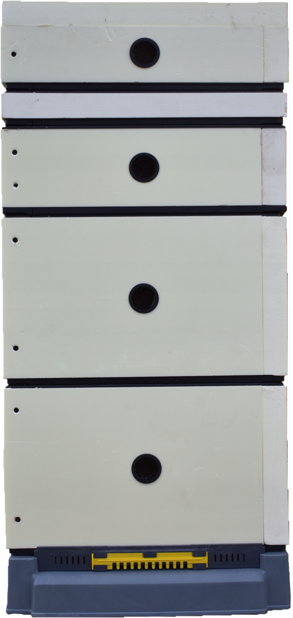 Dzięki rozwiązaniom które stosujemy korpusy idealnie leżą jeden na drugim co czyni je bezpieczniejszymi w transporcie i przy silnych wiatrach. Jednak zważywszy na główny atut naszych uli czyli ich LEKKOŚĆ proponujemy aby cały ul spinać pasem tak aby wiatry lub nierówności w transporcie nie spowodowały wywrócenia uli.