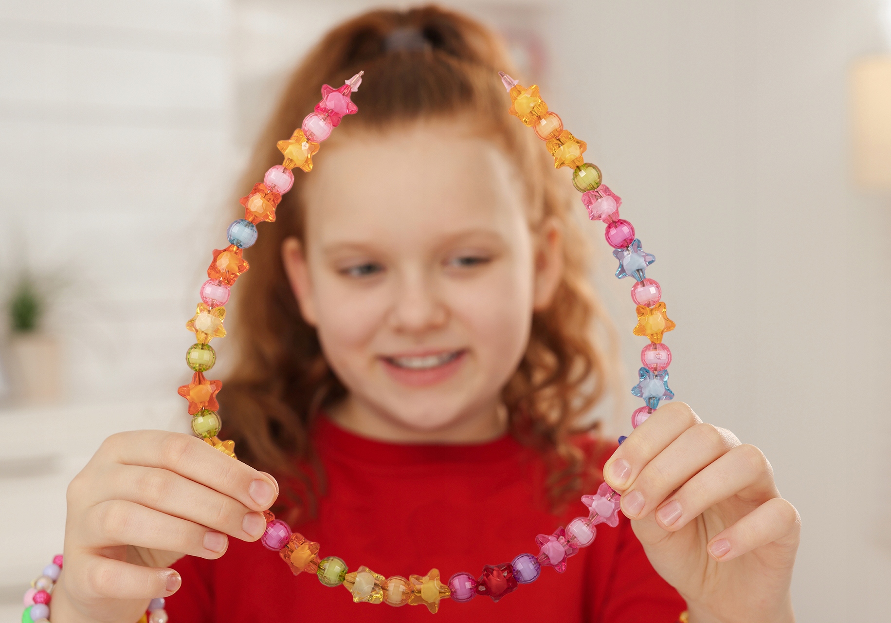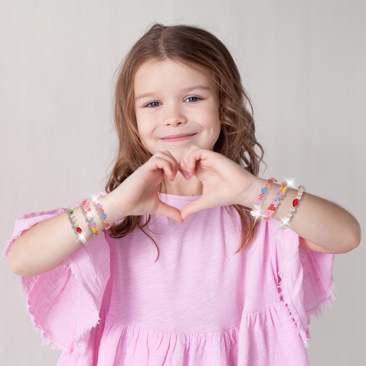Prawie każda dziewczynka uwielbia biżuterie, błyskotki, koralki, zawieszki. Prezentowany zestaw do tworzenia bransoletek i opasek jest idealnym prezentem dla małej księżniczki, która zamieni się w prawdziwą kreatorkę mody.