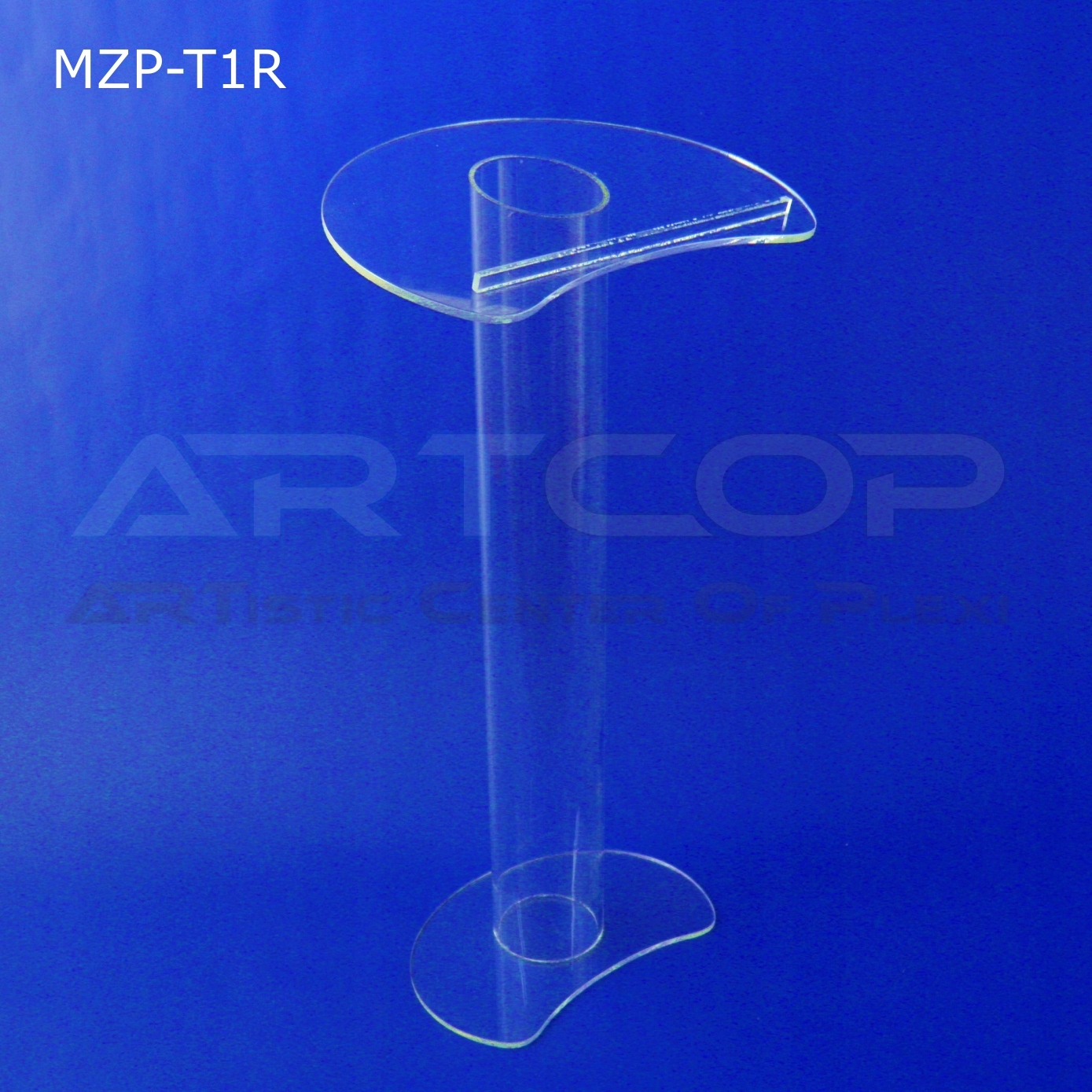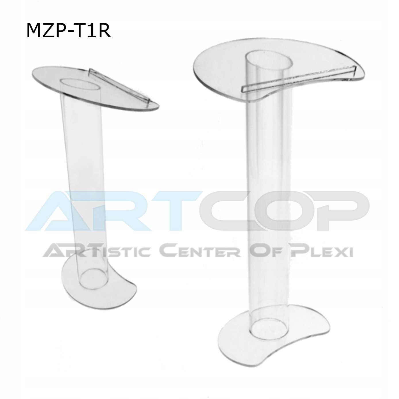 Materiał: plexi bezbarwna blat + noga - 10mm, podstawa - 12mm, stopa z rury fi 20cm.