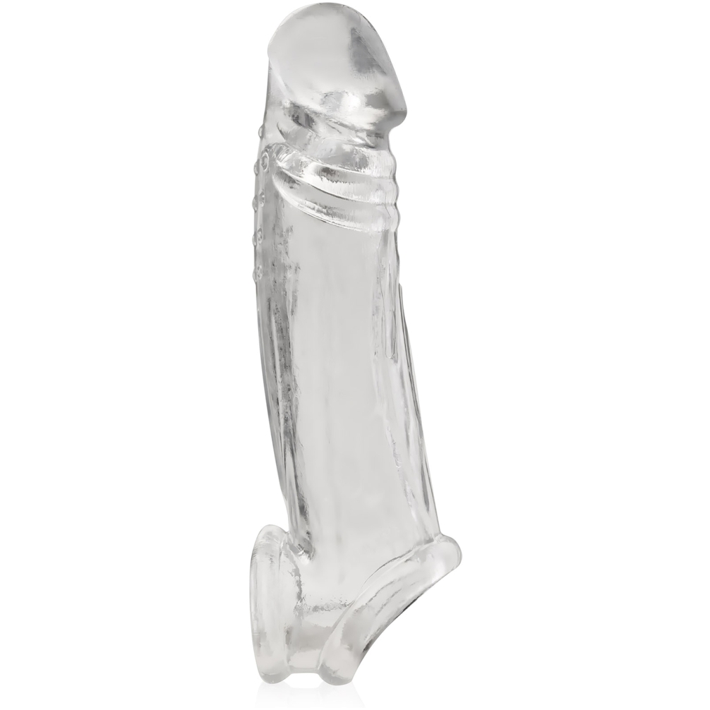 Żelowa, anatomiczna nakładka erekcyjna, przedłużająca penisa o 3 cm. Elastyczna, a jednocześnie odpowiednio uciskowa, dla zapewnienia efektu mocnego wzwodu, utrzymania erekcji i opóźnienia wytrysku. Dzięki konstrukcji z pierścieniem na jądra nakładka jest niezwykle komfortowa, a jednocześnie regulacja dopływu krwi do ciał jamistych penisa jest bardziej skuteczna. Produkt na swojej powierzchni ma stymulujące wypustki i strukturę męskiego penisa z zachowaniem jego naturalnych cech jak nabrzmiałe z podniecenia żyłki czy soczysta żołądź. Wewnątrz, na czubku znajduje się zbiorniczek. W prosty sposób możesz poprawić swoje umiejętności w sypialni i zapewnić swojej kobiecie maksymalną przyjemność.