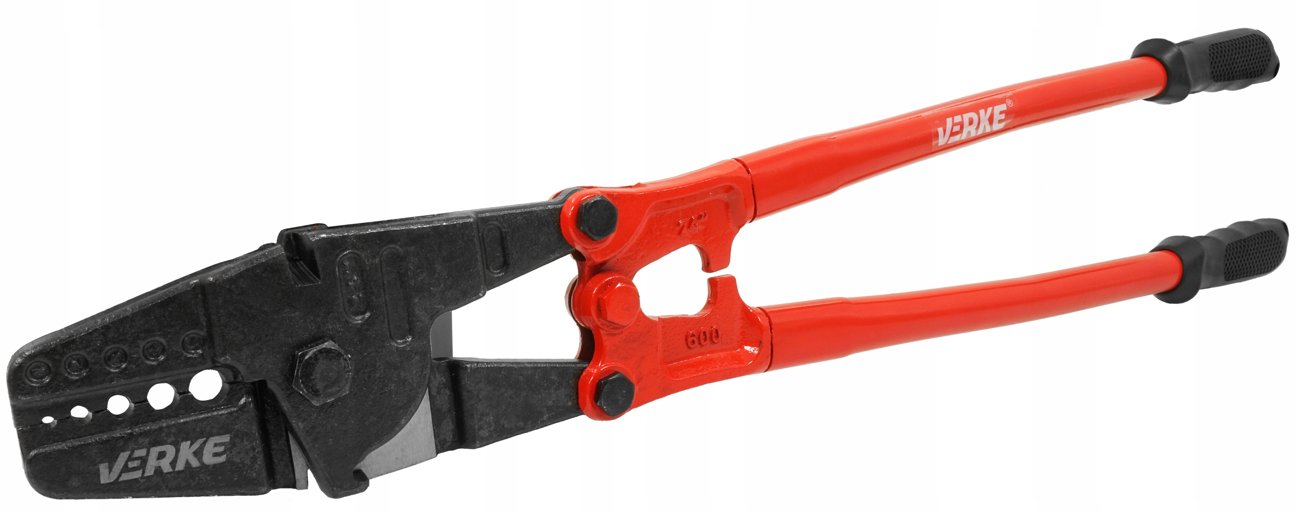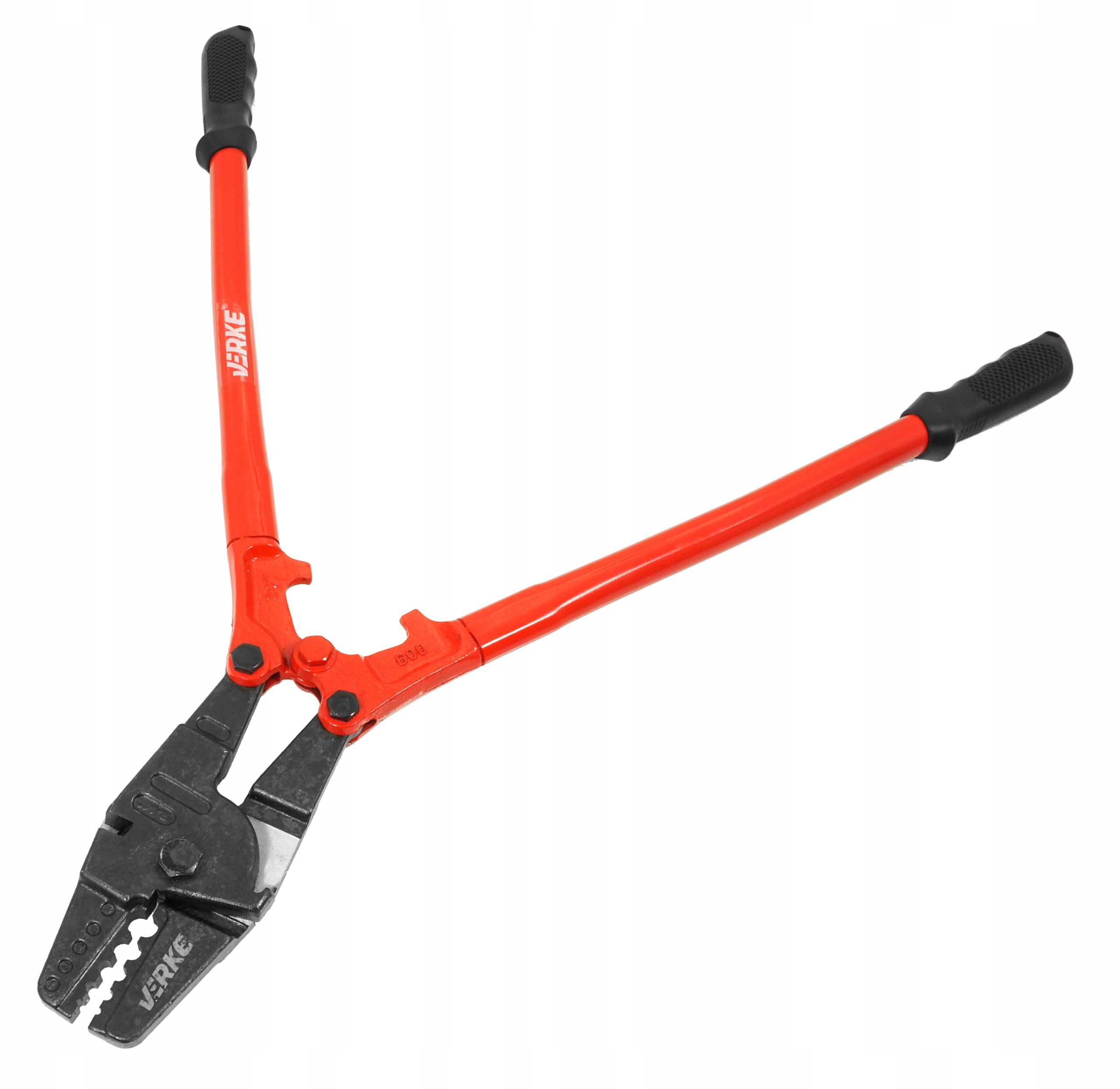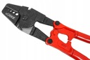 Specjalistyczne szczypce do zaciskania tulejek na linach stalowych. Głowica kuta ze stali , przystosowana do zaciskania tulejek w 5 średnicach ok 4 / 6,5 / 8 / 9 / 10 mm . Ramiona szczypiec / praski, wykonano z lakierowanych rur stalowych o długości ok. 660 mm- 24". Na końcówkach umieszczono wykonane z tworzywa, wygodne uchwyty. W głowicy znajdują się dwie szczeliny spełniające funkcję gilotyn do cięcia lin . Do silnego zaciskania tulejek blokujących linki stalowe. Umieścić zacisk liny w odpowiednim wycięciu szczęki szczypiec i silnie zacisnąć.