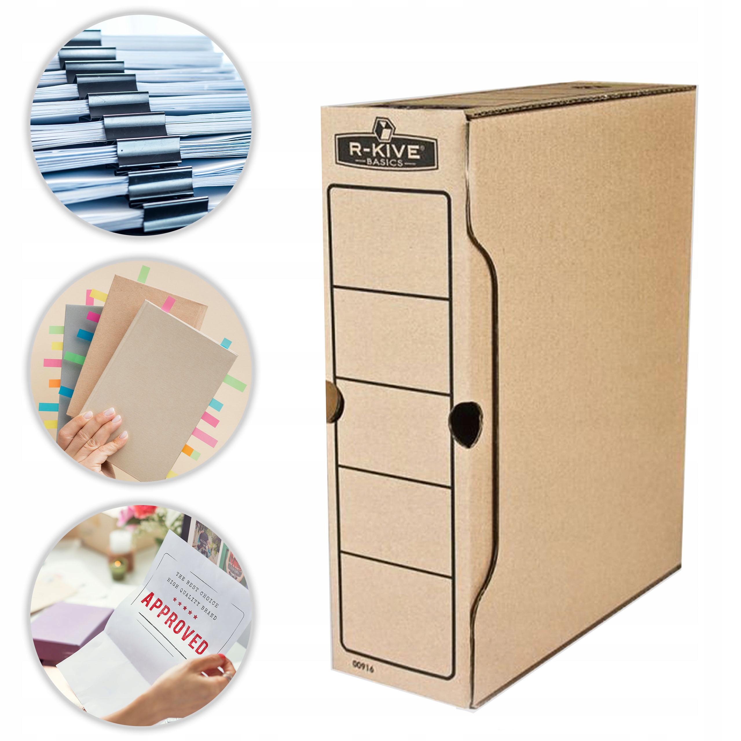 Pudło archiwizacyjne 80mm R-Kive Fellowes 0091402. Przeznaczone do przechowywania dokumentów, katalogów, materiałów w teczkach.
