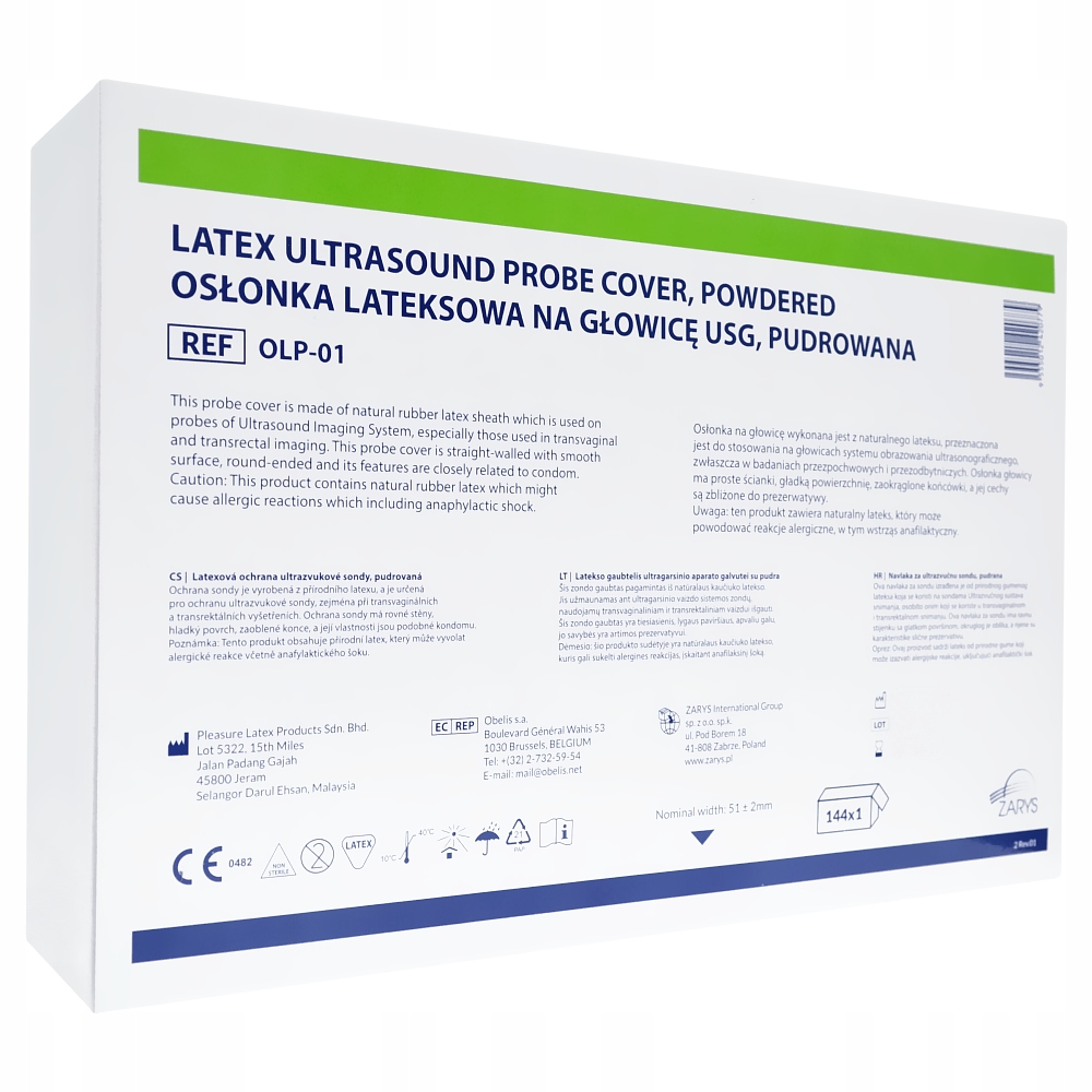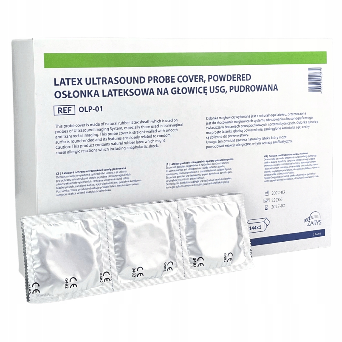 Zabezpieczająca pudrowana osłonka higieniczna na głowicę sondy USG. Każda osłonka pakowana jest pojedynczo w folię aluminiową. Osłonka chroni przed zanieczyszczeniem głowicy systemu obrazowania ultrasonograficznego płynami ustrojowymi, ułatwia czyszczenie i dezynfekcję głowicy.