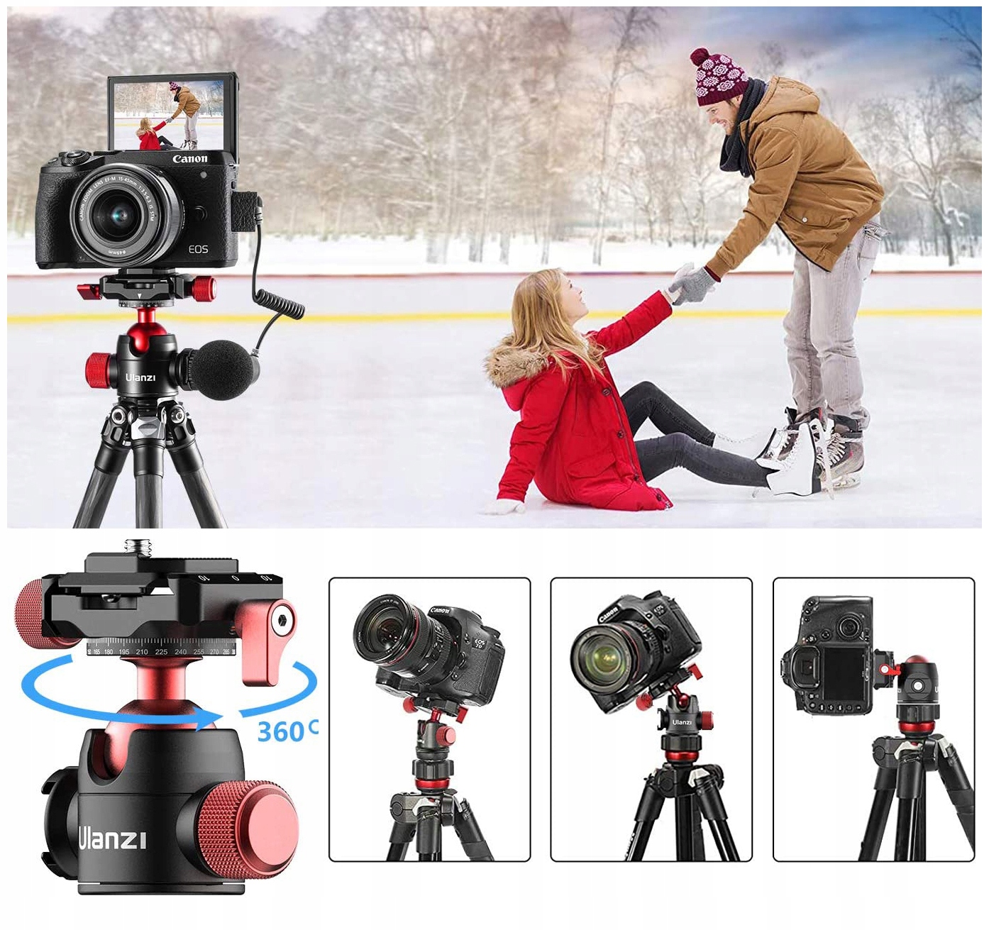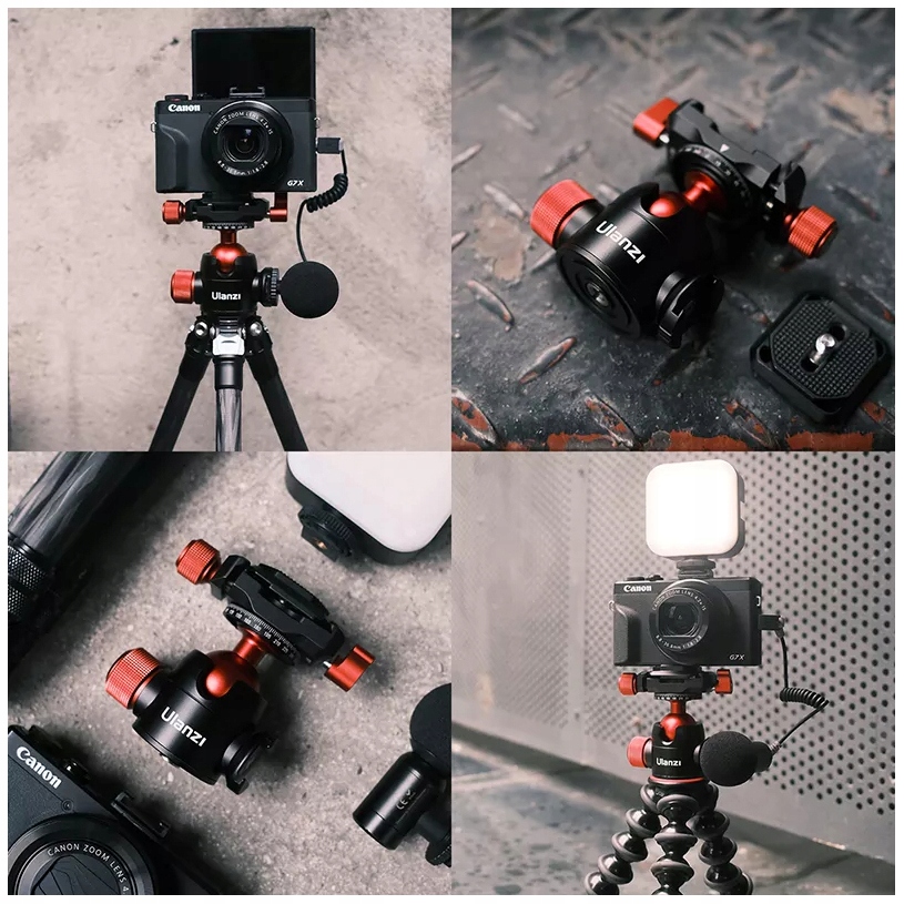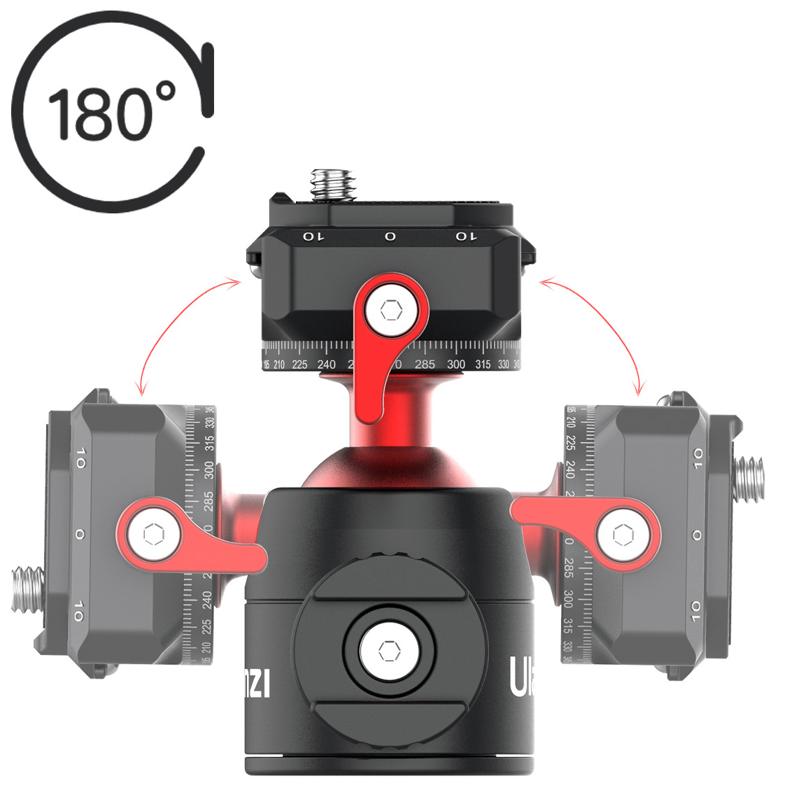 Ulanzi U-70 to głowica kulowa z dodatkową podziałką w poziomej płaszczyźnie regulacji, dzięki której panoramowanie może być bardzo precyzyjne. Regulacja panoramy ma oddzielną wygodną blokadę.