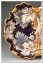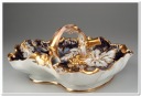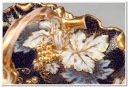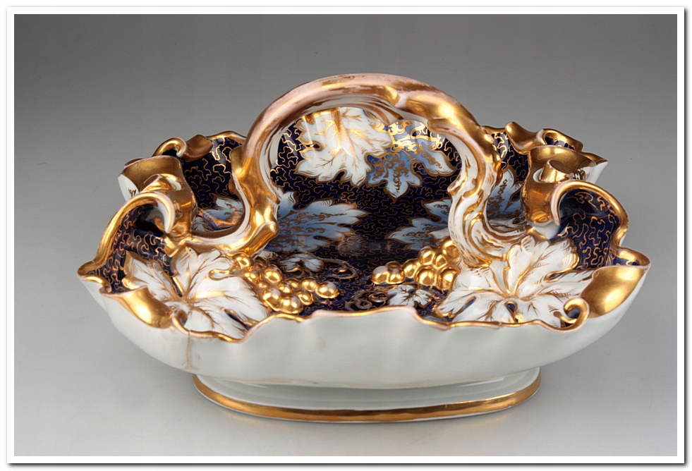 Duży kabaret z wytwórni porcelany Loket / Elbogen. Porcelan gruba ręcznie malowana. Sygnatura wyciskana w masie z lat 1833-1860, dodatkowo wycisk roku produkcji 850 (1850 rok). Stan dobry, widoczna stara naprawa.