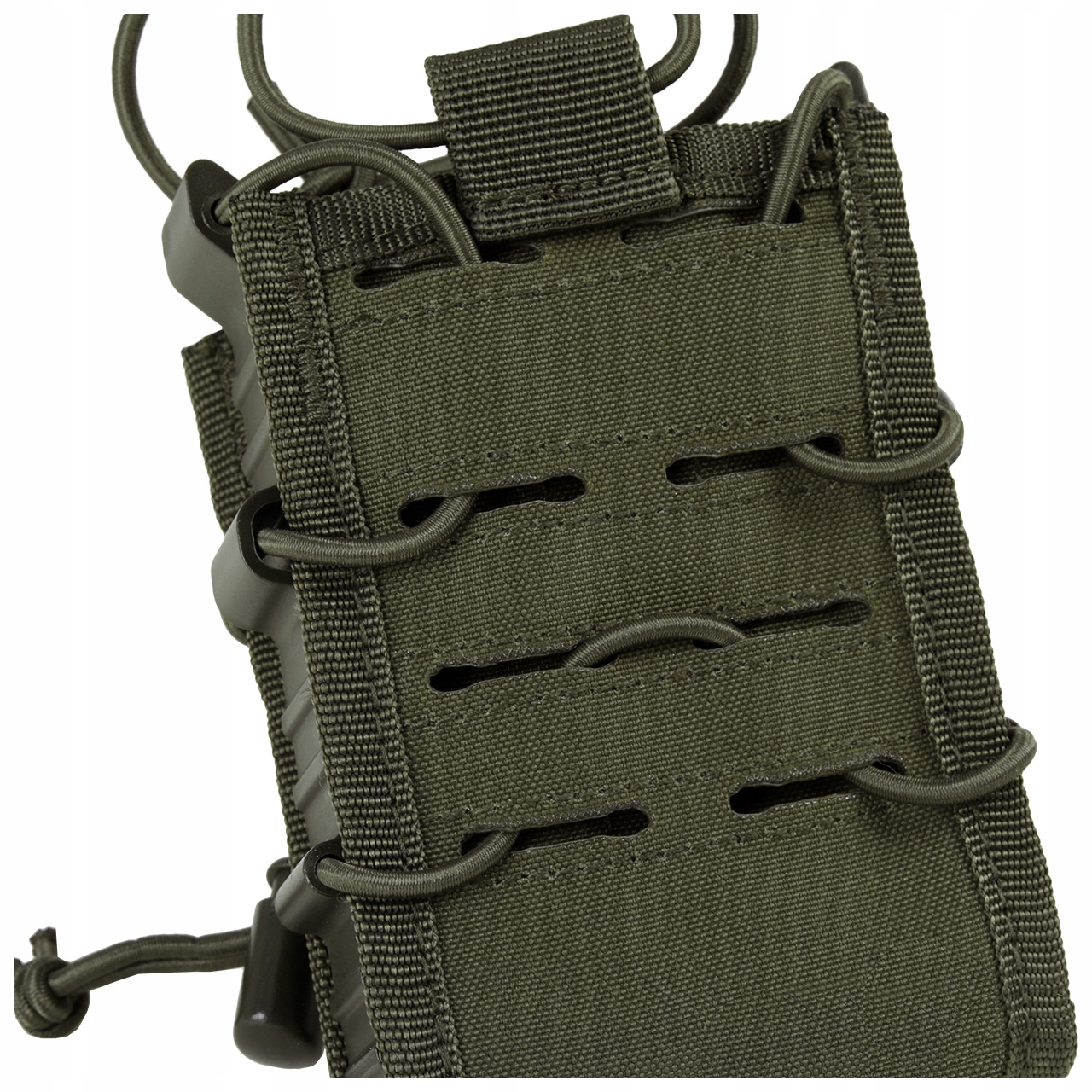 Magazynek utrzymywany jest w kieszeni dzięki elastycznej lince, co przy braku klapy umożliwia jego szybkie dobycie. Uchwyt na gumowej lince ułatwia wyjęcie magazynka.