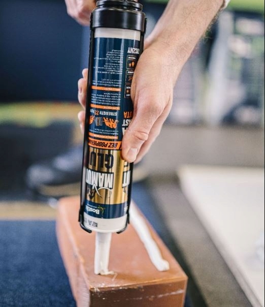 Jednoskładnikowy, trwale elastyczny super lepki i gęsty klej na bazie MS POLIMERU (modyfikowanych silanów) do mocowania mocno obciążonych elementów w budownictwie i przemyśle