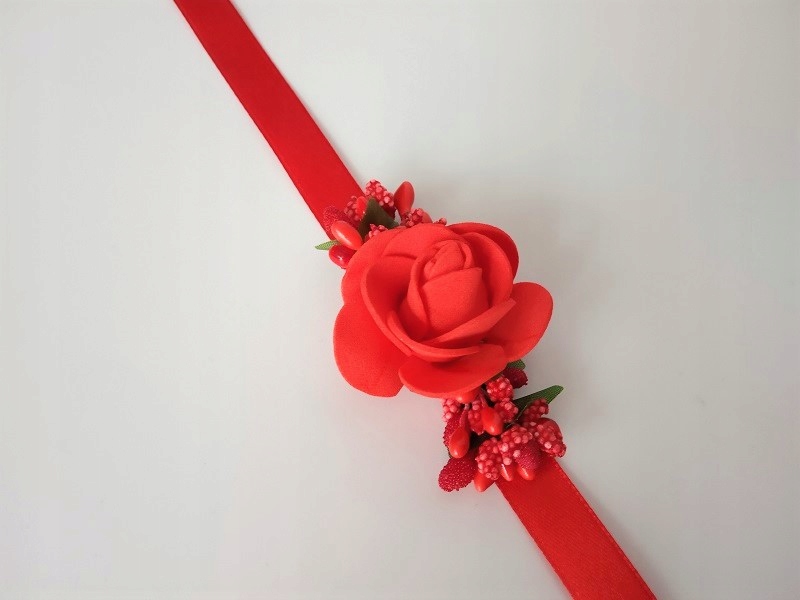 * czerwonej satynowej tasiemki o szerokości ok. 1,2cm,