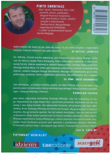 "Jako dzieci najbardziej kochaliśmy Świętego Mikołaja. Cały rok czekaliśmy na niego. Pisywaliśmy do niego długie listy z życzeniami prezentów. Wydawało się nam, że mamy z nim dobry kontakt. Nie odpowiedział listownie, ale prezenty były jego odpowiedzią. W noc Świętego Mikołaja sataraliśmy się nie spać, aby go przyłapać na dobrym uczynku. Aby go wreszcie spotkać. Sen był zawsze mocniejszy. I ten sen trwa do dziś w klasztorze. Kiedy szafarz powiesi nam na klamce torebkę cukierków i kilka ciastek. Wracają wspomnienia. Święty Mikołaj żyje, a dobro zwycięża i ma ostatnie słowo. Książeczka Piotra Kordyasza przynosi nam opowieść o prawdziwym Świętym Mikołaju. O człowieku pełnym Boga i ukazującym Jego dobroć. Przeczytałem ją jednym tchem.