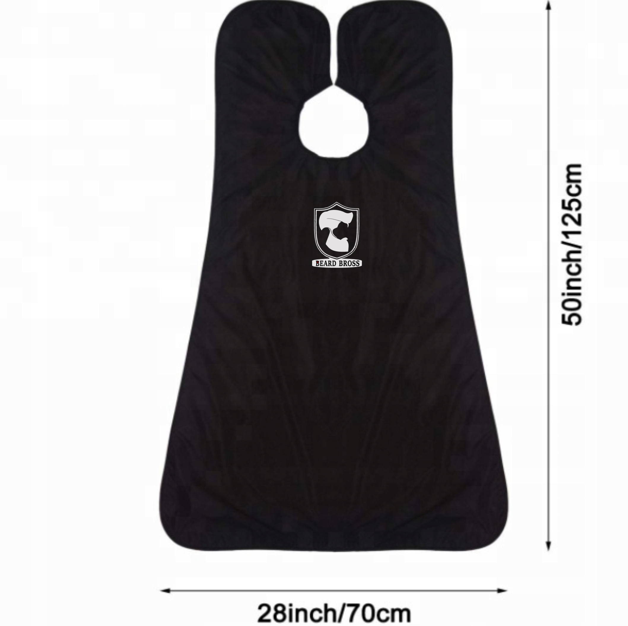 Черная накидка борода Бросс - еще один элемент набор. Изготовлен из полиэфирной ткани, в которой не забиваются волосы с регулируемой застежкой на липучке и присосками поможет в оставлении чистота после ухода за волосами на лице.