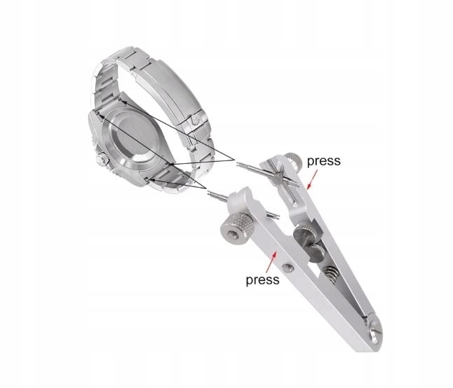 Profesjonalny przyrząd do wymiany bransoletek i pasków, wygodny i pewny w użyciu. Zmienny kąt ustawień końcówek, pewny chwyt i łatwość nastawiania zapewnia wygodę i bezpieczeństwo bransoletki i koperty przed porysowaniem.