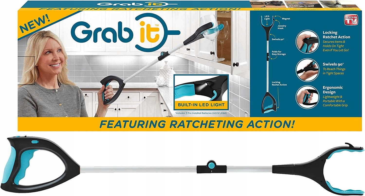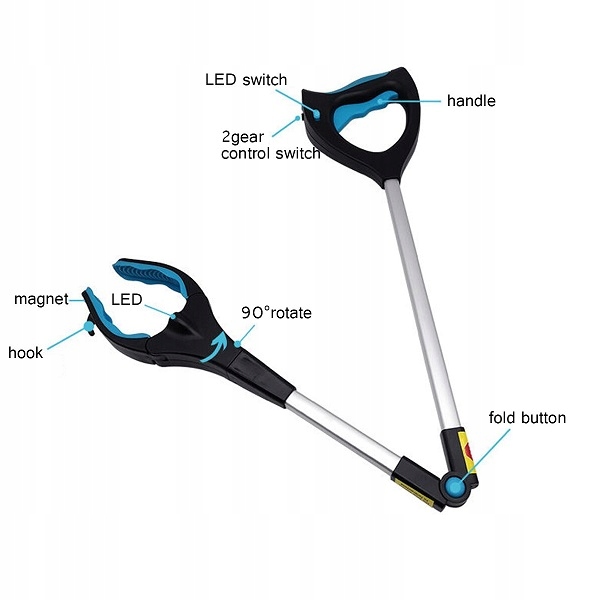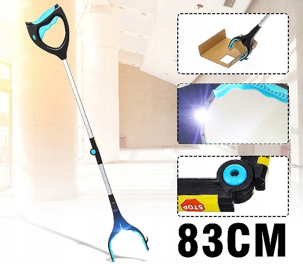 Dodatkowo wyposażony jest w lampkę, która podświetla chwytany przedmiot. Urządzenie posiada haczyk, dzięki czemu po zakończonej pracy możemy je odwiesić w dowolne miejsce.