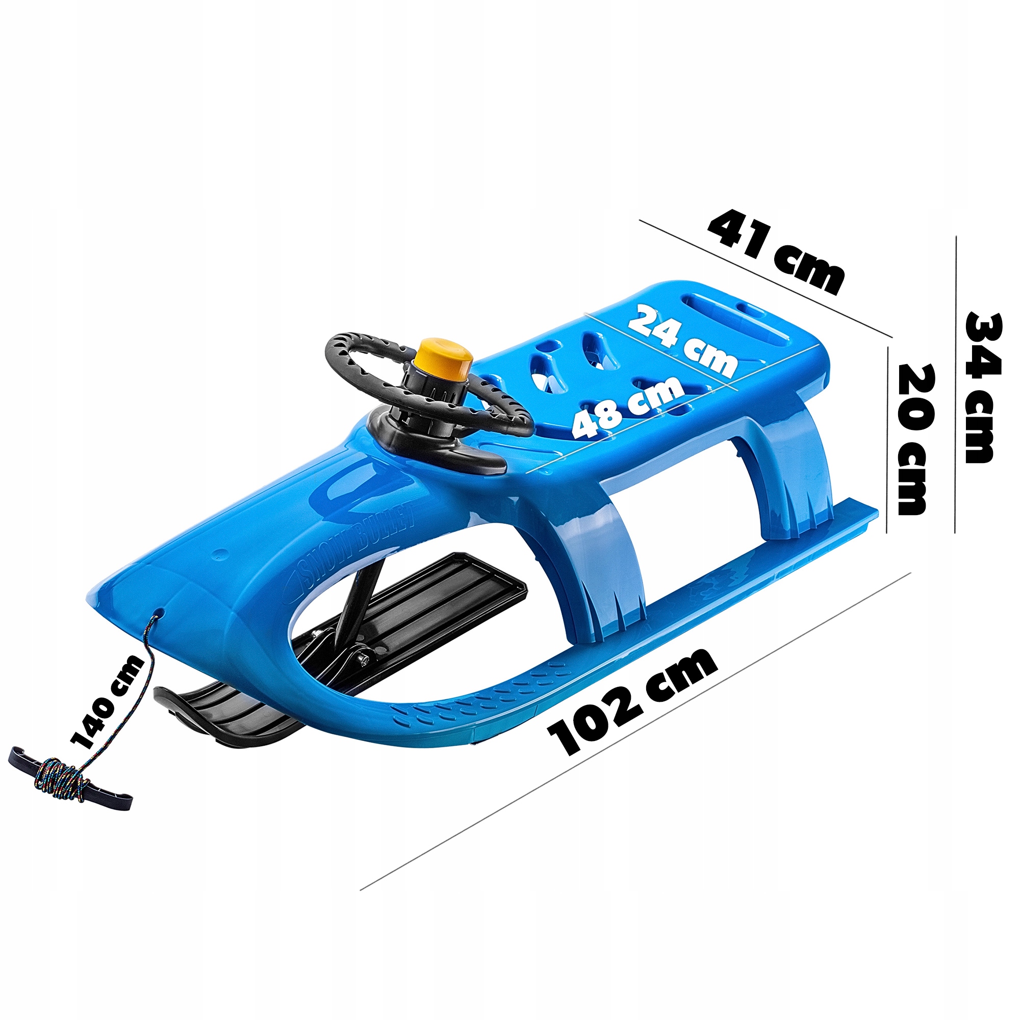 ❄️STYLOWE – sanki z kierownicą i klaksonem mają wymiary 102 x 41 x 20 cm. Za sprawą efektownego kształtu, a także żywego koloru doskonale się prezentują. Twoja pociecha może zatem z dumą pokazać je swoim przyjaciołom. Nasz ślizg będzie świetnym pomysłem na prezent!