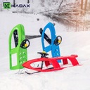 ❄️WYTRZYMAŁE – ślizg zjazdowy wykonano z trwałego tworzywa sztucznego, a jego płozy okuto stalową blachą. Dzięki temu ma dobry poślizg na śniegu i jest odporny na działanie niskich temperatur (do -28 stopni).