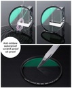 Ochronna powłoka - filtr jest odporny na zarysowania i uszkodzenia mechaniczne, hydrofobowy, odporny na zabrudzenia i kurz, łatwy w czyszczeniu.