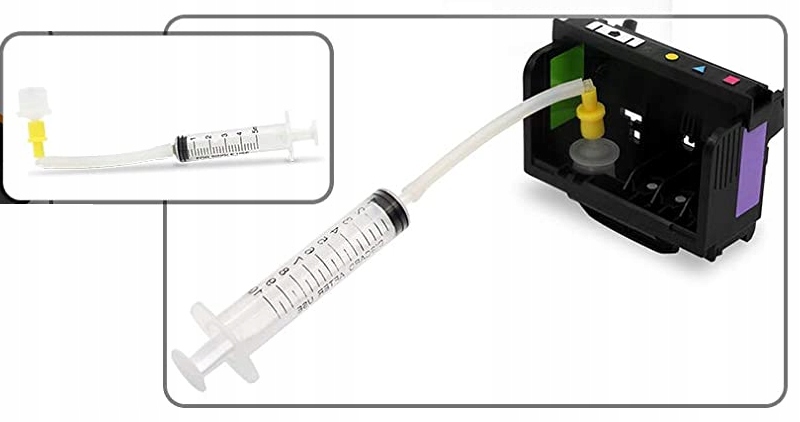 Do głowic Epson - Nie wymaga demontażu głowicy (proszę pamiętać o ręczniku papierowym pod spód głowicy aby aplikowany płyn nie zalał urządzenia)