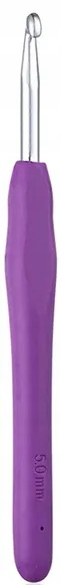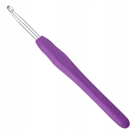 Эргономичный крючок имеет специально контурную силиконовую ручку. Благодаря этому устойчиво лежит в руке, не скользит и заставляет руку не уставать, как в стандартный случай вязания крючком.