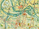 Reprint składany, wielobarwny; uwypuklone tramwaje i autobusy, zaznaczone zajezdnie oraz pętle poszczególnych linii; na odwrocie letni rozkład jazdy wszystkich linii tramwajowych i autobusowych, podane odległości w km oraz średnia prędkość jazdy.