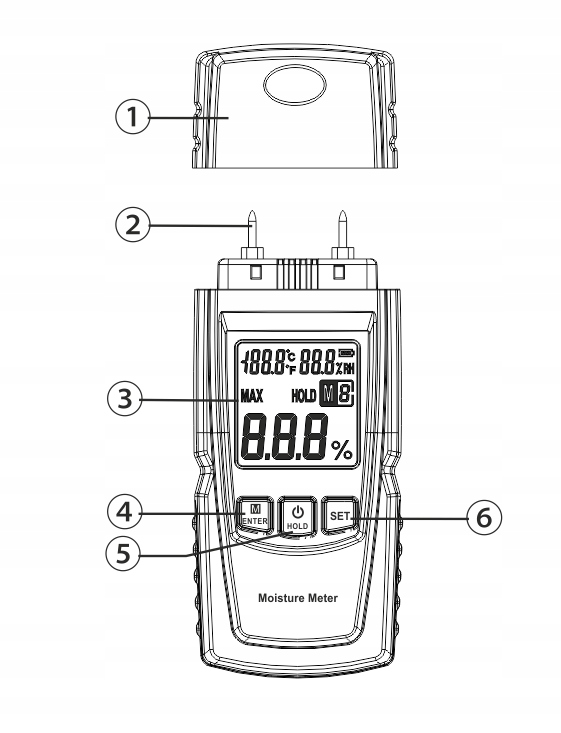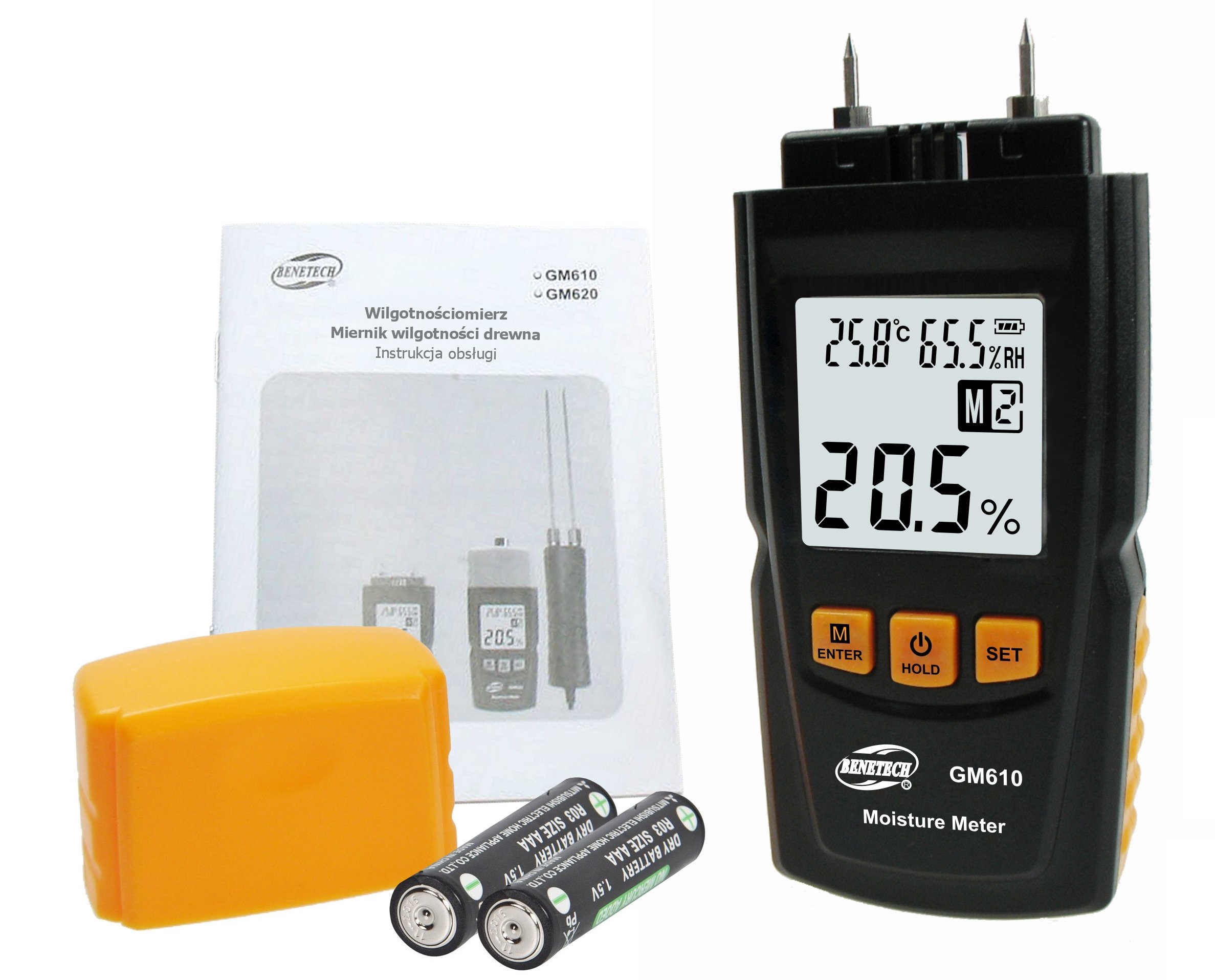Kompaktowe i wytrzymałe urządzenie pomiarowe do szybkiego określania wilgotności materiału - w drewnie opałowym, drewnie tarcicowym, płytach wiórowych, fornirze, a także do papieru, roślin leczniczych i bambusa oraz innych tego typu materiałach.