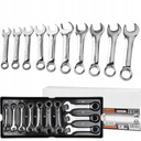 Zestaw 10 sztuk kluczy płasko-oczkowych krótkich umieszczonych we wkładzie do wózka warsztatowego typu A.