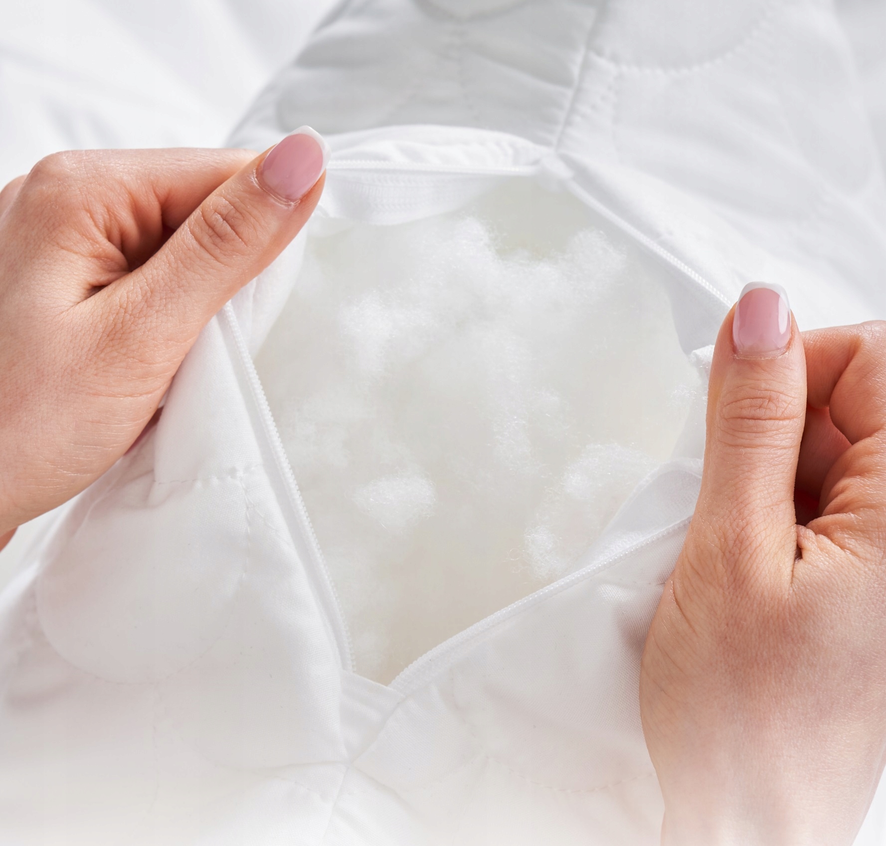 Jeśli nasza poduszka okaże się dla Ciebie zbyt twarda, w łatwy sposób dzięki wszytemu ergonomicznemu zamkowi, możesz usunąć nadmiar wypełnienia, aż do uzyskania pożądanej miękkości. Bez obaw utraty jakości produktu.