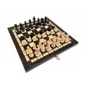 W drewnianej, składanej na pół, "wypalanej" szachownicy znajdziesz zarówno figury szachowe jak i bierki warcabowe.