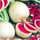 ✅ Korzeń koloru biało - zielonego z czerwonym miąższem może osiągnąć do 15 cm średnicy.