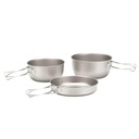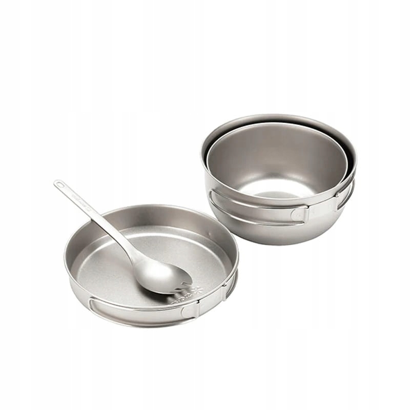 Każde z naczyń posiada bardzo funkcjonalną, składaną rączkę, która po złożeniu ściśle przylega do ścianki. Wszystko mieści się w poręcznym i niezwykle przydatnym siatkowym pokrowcu chroniącym przed przypadkowymi zarysowaniami, a całość stanowi świetny, funkcjonalny i praktycznie niezniszczalny tytanowy komplet do przygotowania posiłku.
