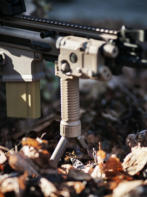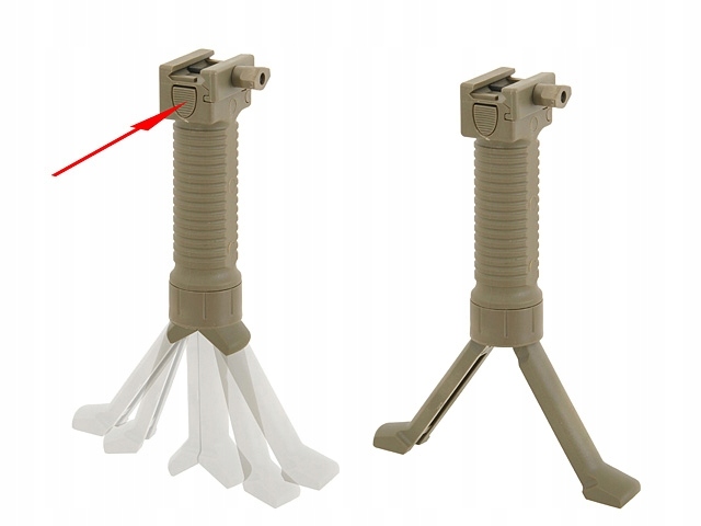 Bardzo dobrze wykonany chwyt z wysokiej jakości materiału. Nylon wykorzystywany jest również przy produkcji elementów ostrej broni. Teleskopowy dwójnóg zwalniany jest za pomocą przycisku (należy przytrzymywać nóżki w trakcie zwalniania blokady). Chwyt dedykowany do każdego modelu wyposażonego w standardową szynę montażową RIS 22mm. Produkt może służyć jako standardowy chwyt taktyczny, lub w razie potrzeby na modelach większego zasięgu jako dwójnóg wspomagający celowanie.