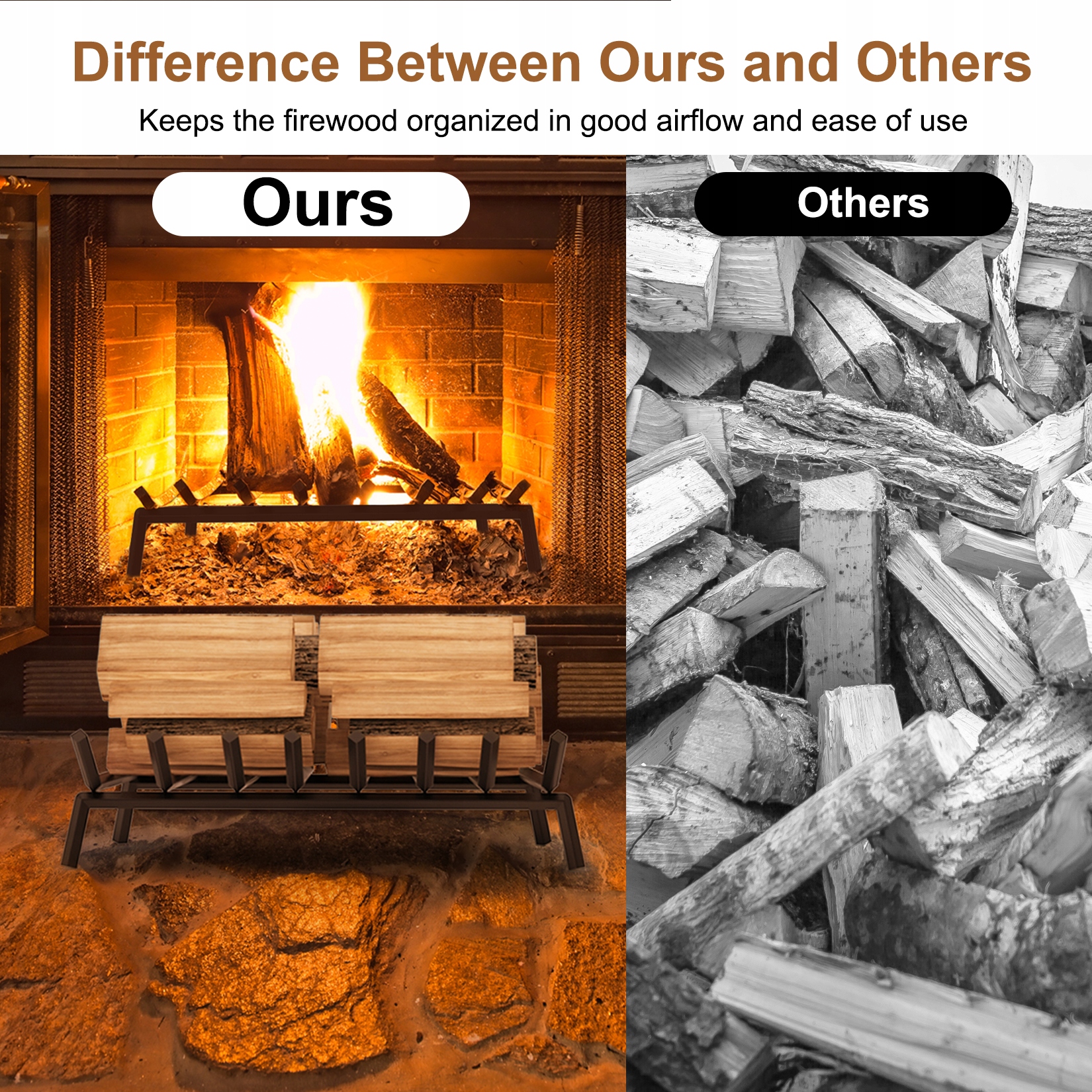 Dodatkowa wysokość umożliwia swobodny przepływ powietrza wewnątrz kominka, pod polanami.
