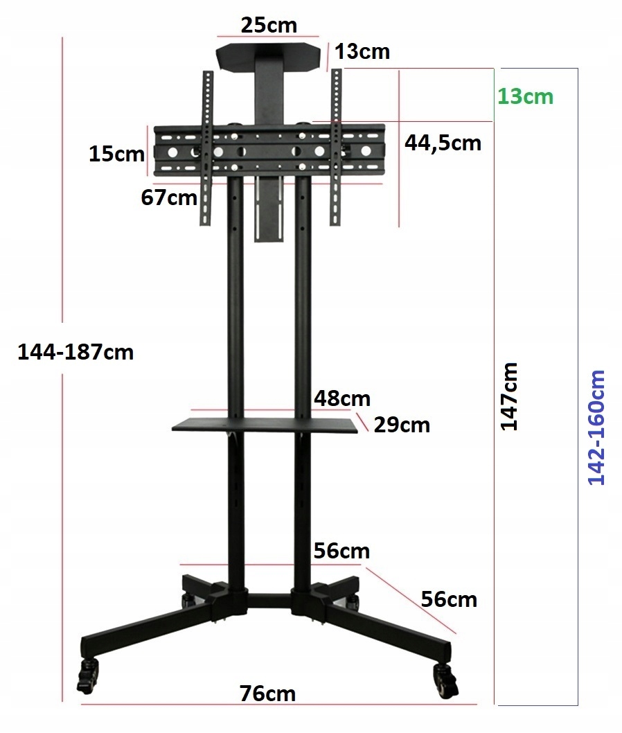 UNIWERSALNY stojak TV do telewizora LCD/LED 32-70" na kółkach