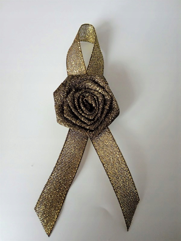 Ozdoba wykonana jest z brokatowej satynowej różyczki i wstążki.