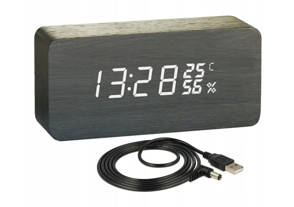 Nowoczesny i estetyczny zegarek cyfrowy z imitacją drewnianego wykończenia to doskonały dodatek do sypialni, biura czy salonu. Jego podświetlane cyfry są doskonale widoczne w dzień i w nocy, funkcja alarmu sprawdza się na co dzień a elegancki wyświetlacz wspaniale prezentuje się w każdym wnętrzu. Urządzenie posiada również funkcję kalendarza oraz mierzy temperaturę oraz wilgotność powietrza.