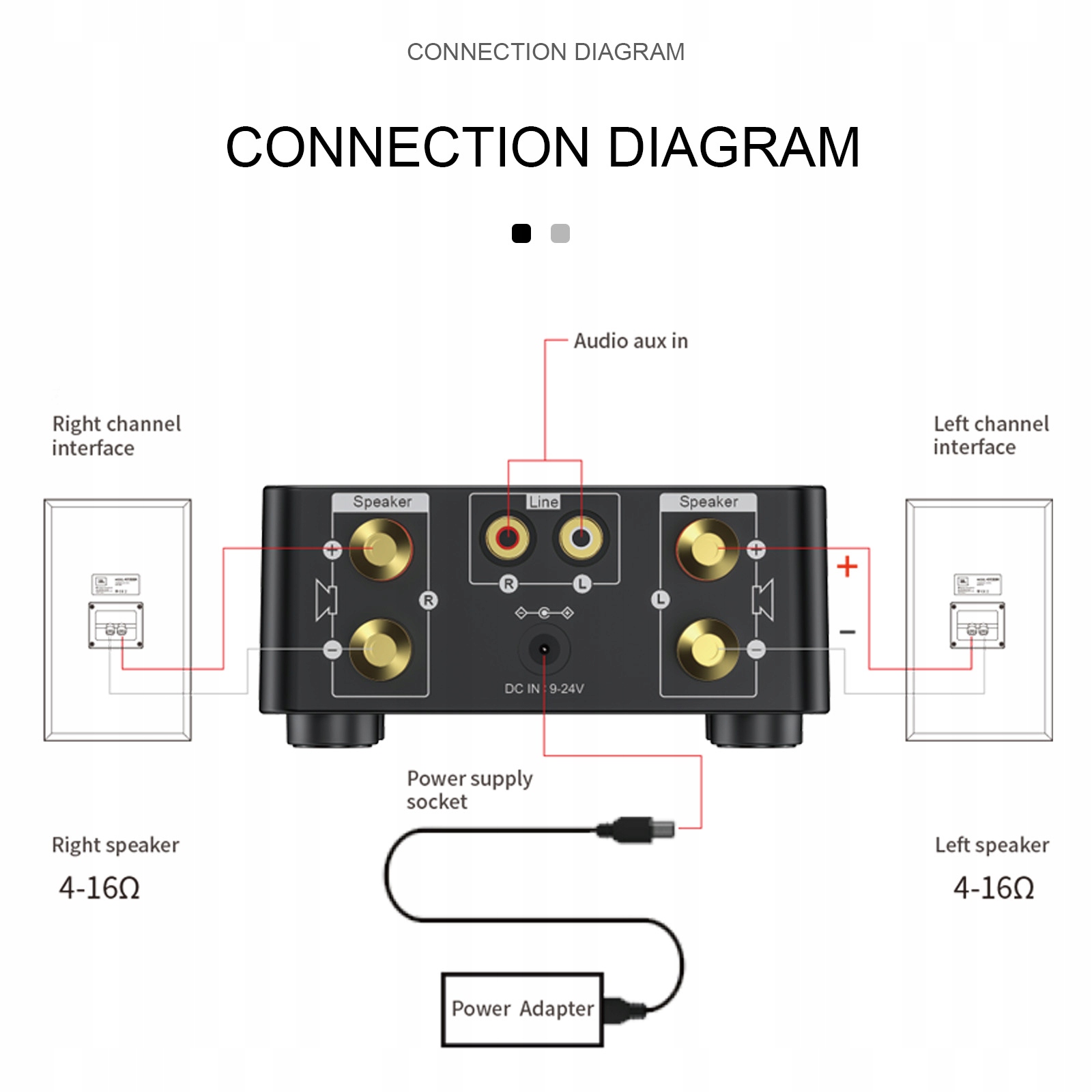 Усилитель может быть подключен к мобильным телефонам, компьютерам, планшетам, ноутбукам, MP3, телевизоров и проекторов с аудиовыходом AV (разъем Lotus) или выходом для наушников 3,5 мм. Разнообразие популярных устройств Bluetooth для беспроводной передачи.