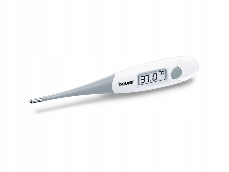 Poznaj termometr gorączkowy marki BEURER-FT-15, który mierzy temperaturę poprzez emisję ciepła. Jest to bardzo praktyczne urządzenie, które sprawdzi się w każdej sytuacji, kiedy zajdzie potrzeba sprawdzenia stanu gorączkowego. Stworzone z myślą także o najmłodszych, którym najtrudniej jest zmierzyć temperaturę. Pomoże Tobie i Twojemu dziecku w walce z przeziębieniem. Dzięki urządzeniu możesz poznać temperaturę ciała już w ciągu ok. 10 sekund. Przy wskazującej powyżej 37,8°C urządzenie wysyła alarm ostrzegawczy. Model zapamiętuje 1 pomiar, dzięki czemu możesz w łatwy sposób kontrolować gorączkę. Termometr posiada wodoodporny wyświetlacz. Po zakończeniu pomiaru - wysyła sygnał dźwiękowy, a następnie automatycznie się wyłącza. Jest to całkowicie bezpieczny model, nie zawiera rtęci ani szkła. Zasilany na baterię.