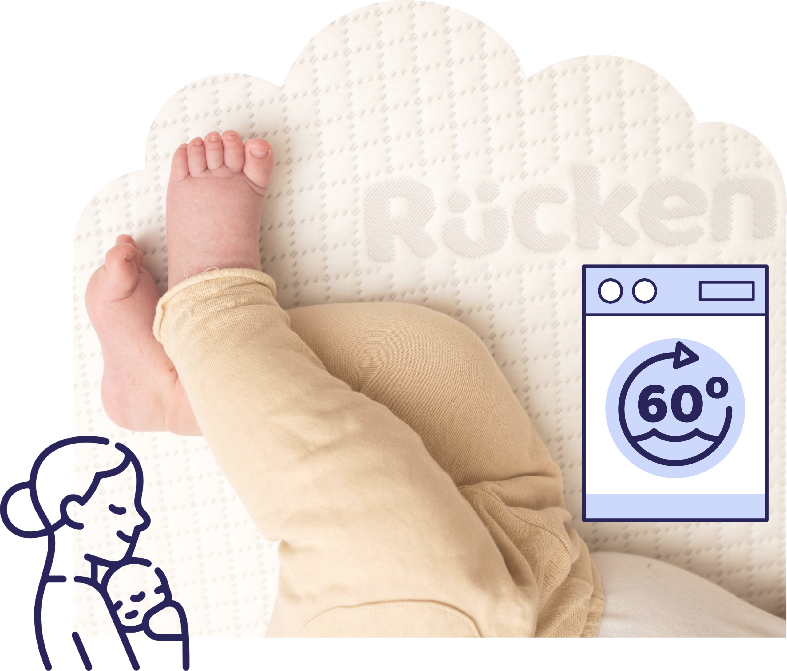 Warto pamiętać, że czystość materaca w łóżeczku to podstawa. Utrzymanie w czystości materaca Rücken jest niezwykle proste. Safe Zip 270° to system, który pozwala rozpiąć i rozłożyć pokrowiec. Dzięki temu wygodnie zdejmiesz pokrowiec celem wyprania, a następnie bez problemu założysz go z powrotem. Koniec z niewygodnym wciskaniem i układaniem materaca w pokrowcu!