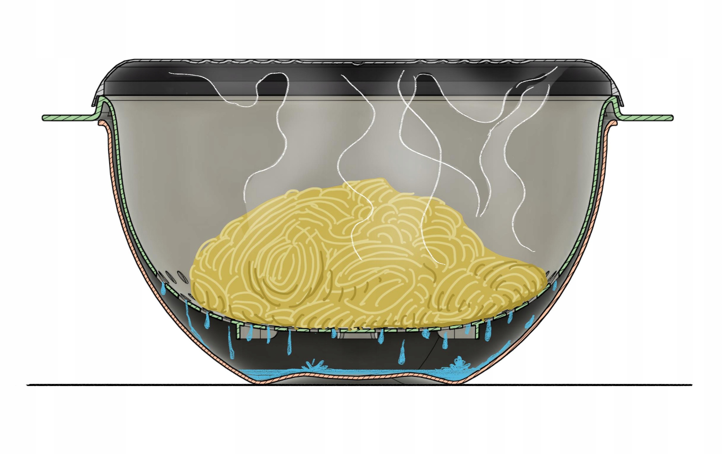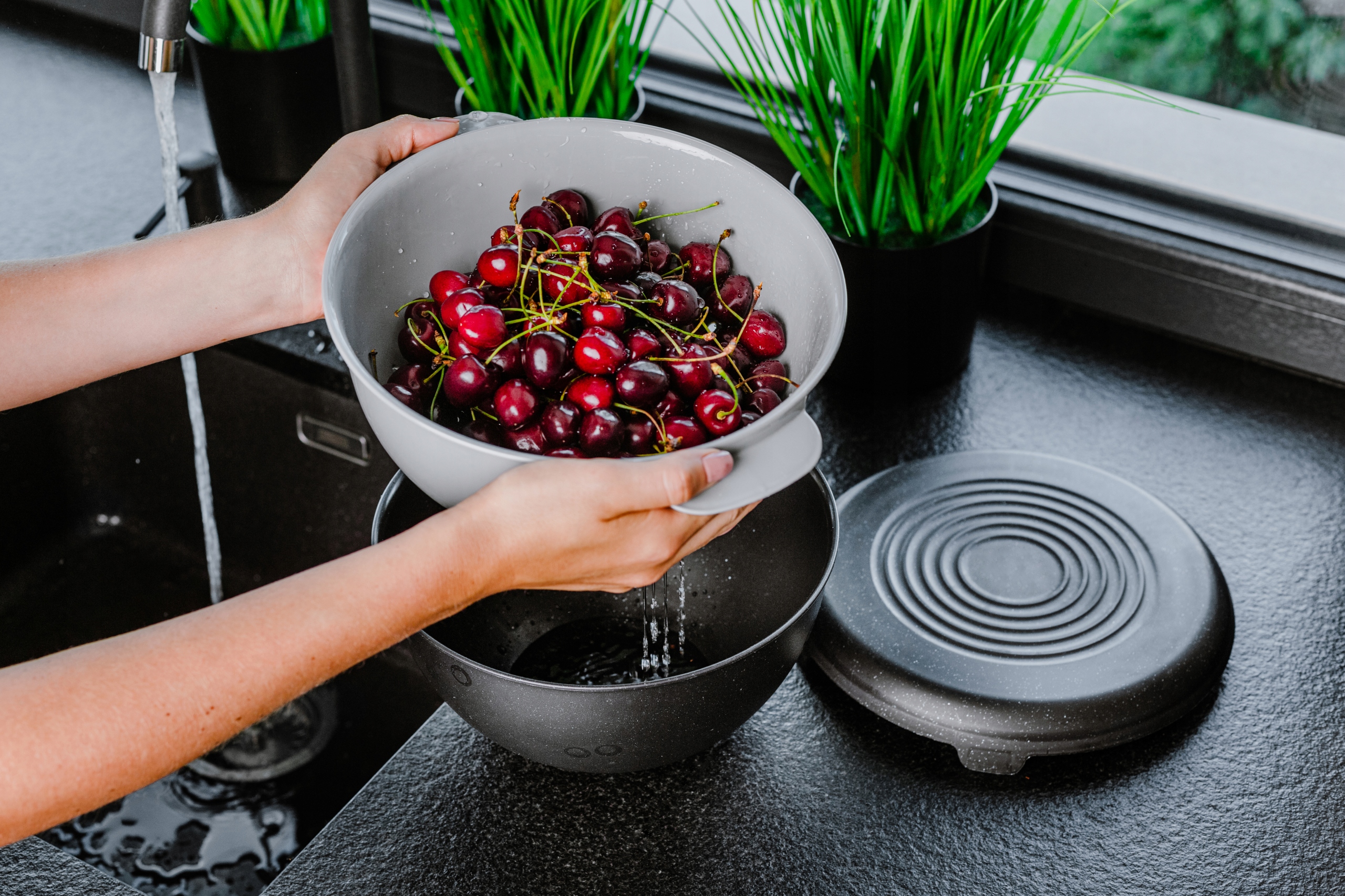 Komplet tworzy idealne połączenie. Doskonale sprawdzi się podczas odcedzania, przykładowo makaronu:
