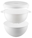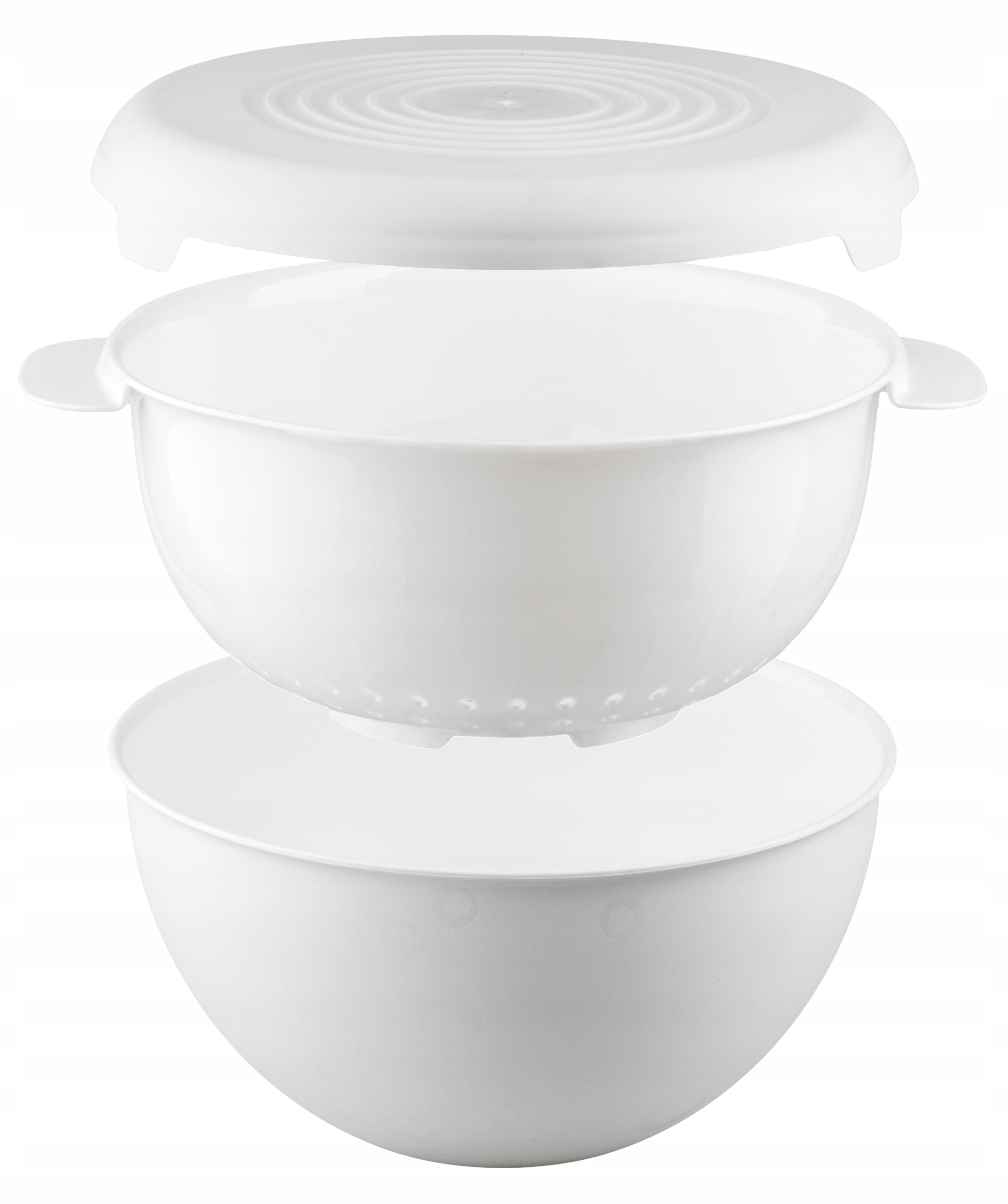 Komplet składający się z miski, durszlaka oraz przykrywki to niezbędny produkt każdej kuchni. Zestaw został zaprojektowana z myślą o funkcjonalnym gospodarowaniu wyposażeniem kuchni. Oba produkty zostały wykonane z solidnego materiału. Dzięki temu charakteryzuje je trwałość i odporność na temperaturę i zarysowania. Dodatkowe uchwyty cedzaka czynią go jeszcze bardziej praktycznym. Dzięki dobrze dopasowanej misce do cedzaka możemy trzymać potrawy w wodzie, a w odpowiednim momencie szybko je odcedzić. Ponadto miski możesz używać do innych czynności kuchennych. W zestawie Komplet bardzo łatwy w użytkowaniu i czyszczeniu.