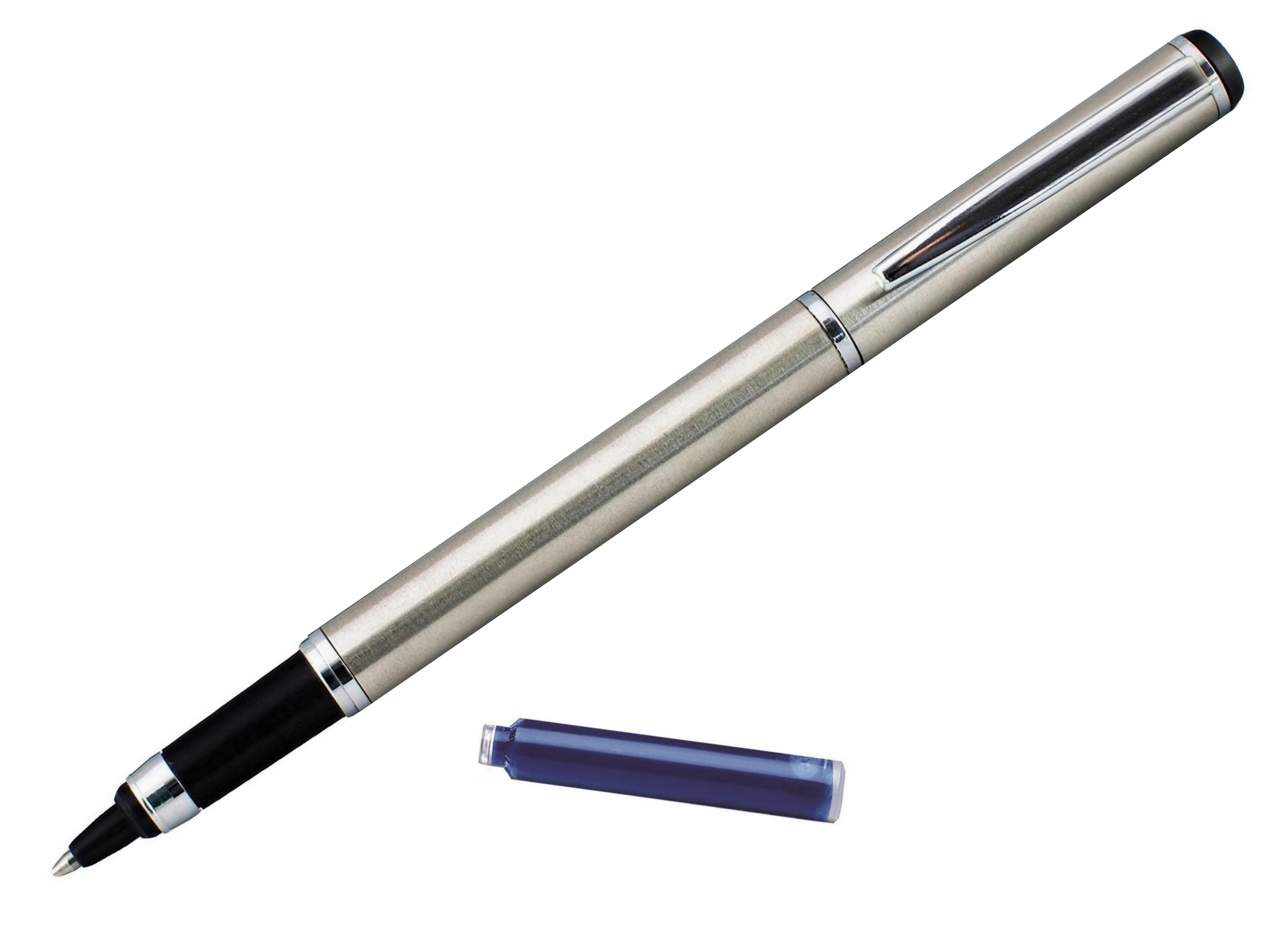 Pióro o klasycznym, prostym kształcie. Polecane praktycznie dla każdego w każdym wieku. Kulka pisząca wykonana z twardego metalu odpornego na ścieranie zapewnia długi czas użytkowania .Korpus, nasadka, pierścienie i klip są metalowe. Korpus w kolorze srebrnym - stalowy. Wykończenia w kolorze srebrnym.