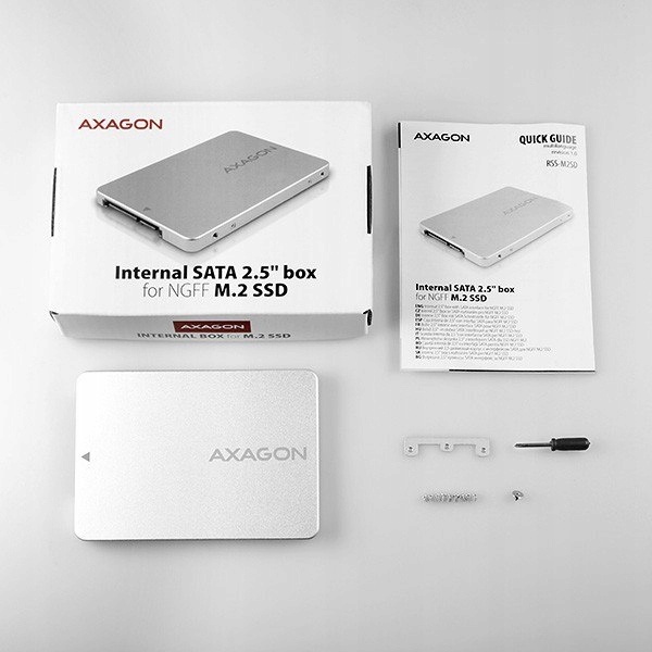 AXAGON Wewnętrzna obudowa 2.5" z interfejsem SATA do dysków SSD M.2 SATA, RSS-M2SD, srebrny