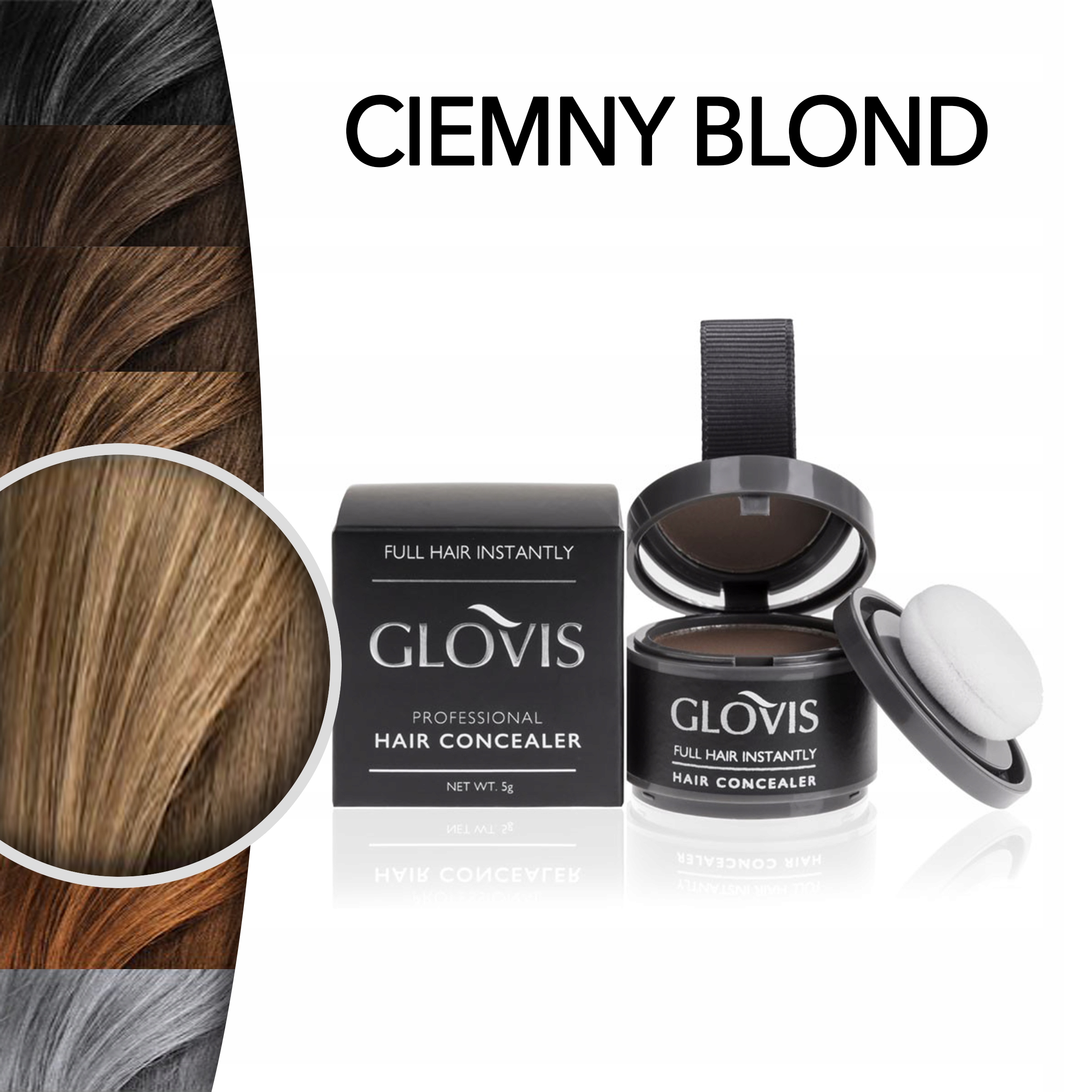 GLOVIS Корректор - инновационное косметическое средство в виде сильно napigmentowanych, спрессованных микроволокна. Идеально тонко маскирует корни и седые волосы.