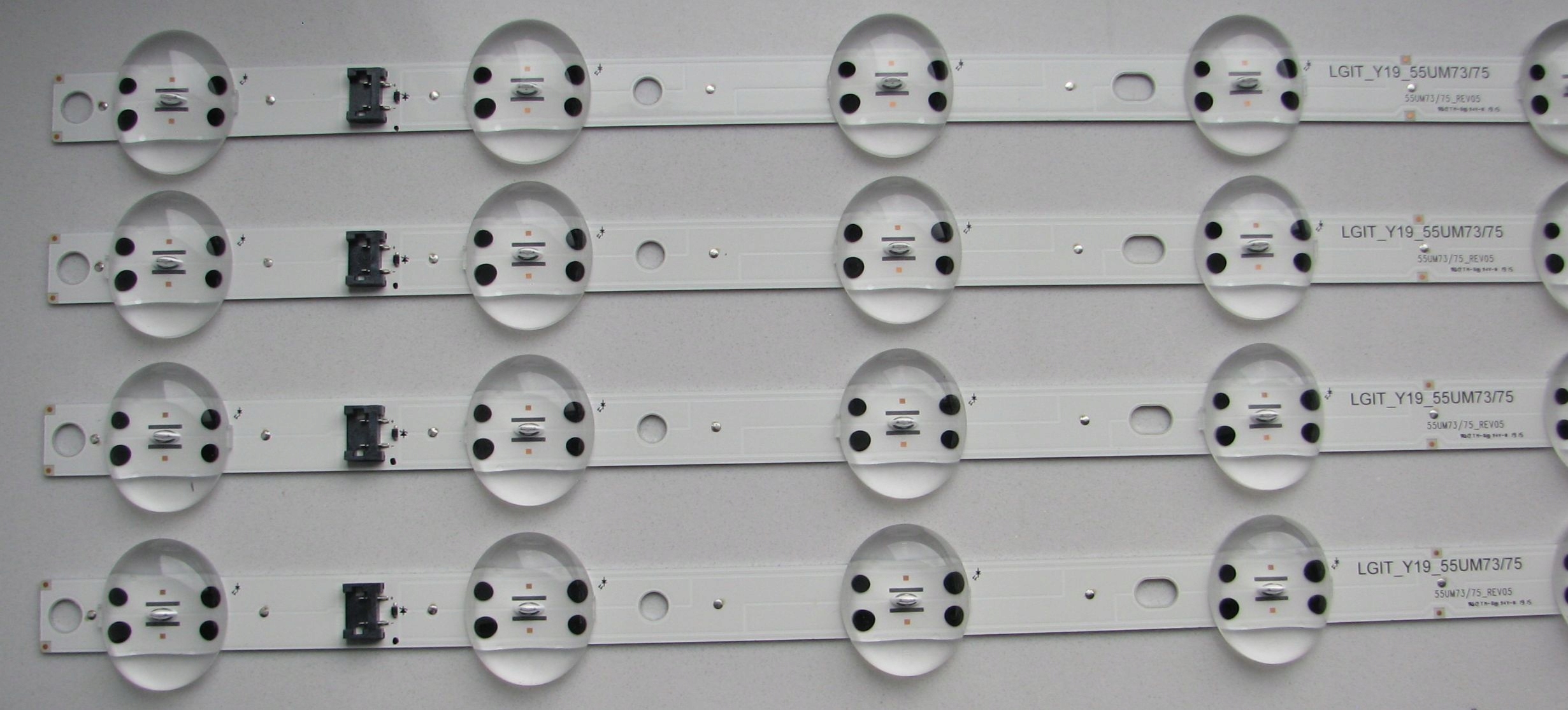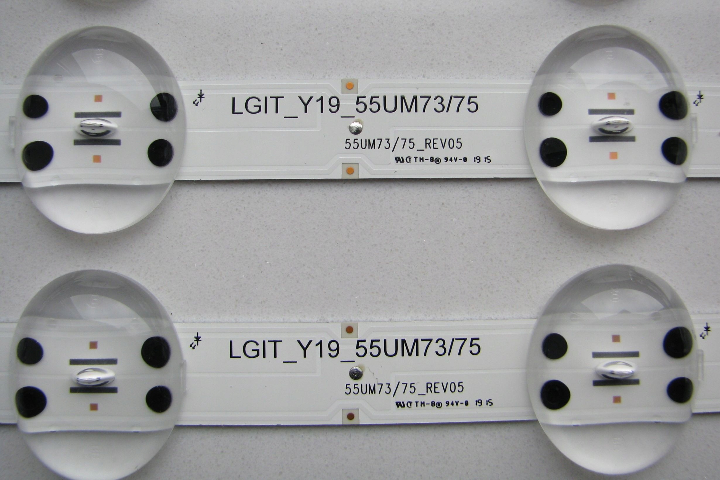 Оригинальная матричная подсветка / светодиодные полосы LG LGIT_Y19_55UM73 / 75 (полосы 100% совместимость/замена с SSC_Y19_TRIDENT_55UM73 / 75-это те же полосы) планки, используемые в многие модели телевизоров LG имеют размер 55 дюймов. Молдинги новые, 100% работоспособные и оригинальные, на алюминий. Кроме того, все полоски заклеены специальной термопроницаемой лентой фирмы 3М зубы хорошо проникают в корпус и отводят тепло.