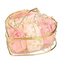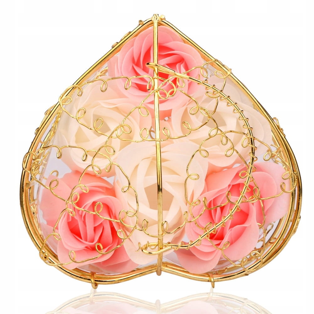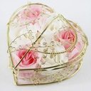To ozdobne pudełko zawiera pięknie wykonane kwiaty z mydła, które wyglądają jak prawdziwe, ale można je używać do kąpieli lub dekoracji.