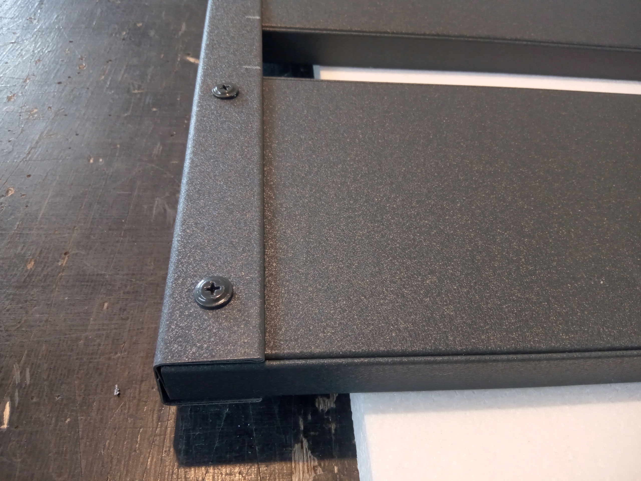 Elementy składowe wykonane są z blachy stalowej w 1 gatunku w kolorze Antracyt czyli Ral 7016. Element powstaje z blachy zimno giętej o grubości 0,50 mm - blacha obustronnie ocynkowana a następnie pokrywana fabrycznie lakierem dekoracyjnym.