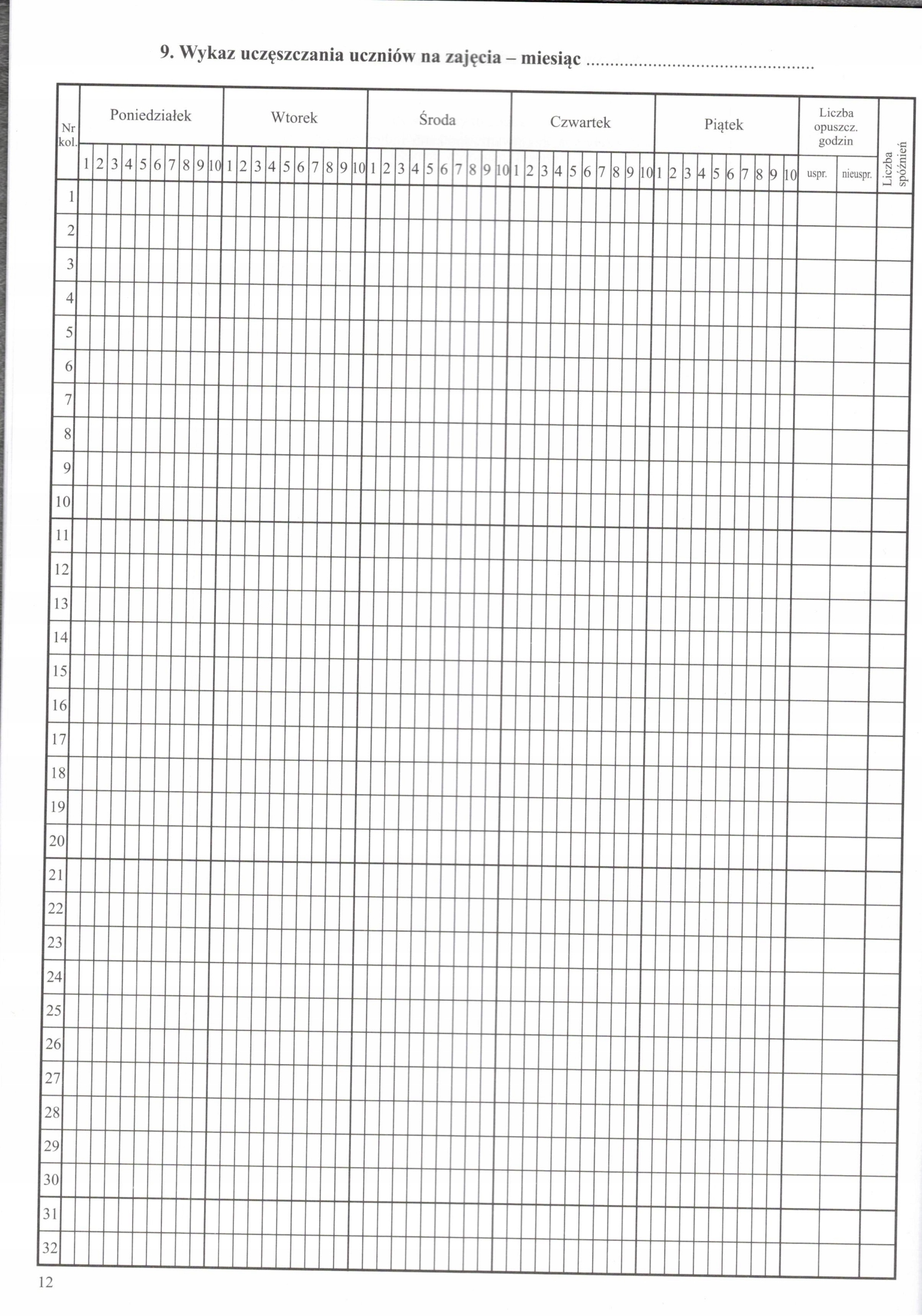 9. Список посещаемости учениками занятий. 10 часов, 44 недели /