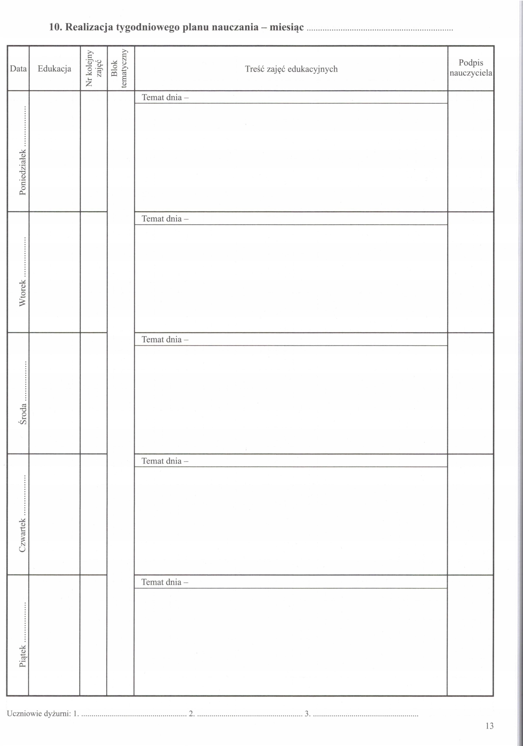 10. Реализация недельного план обучения-месяц .....