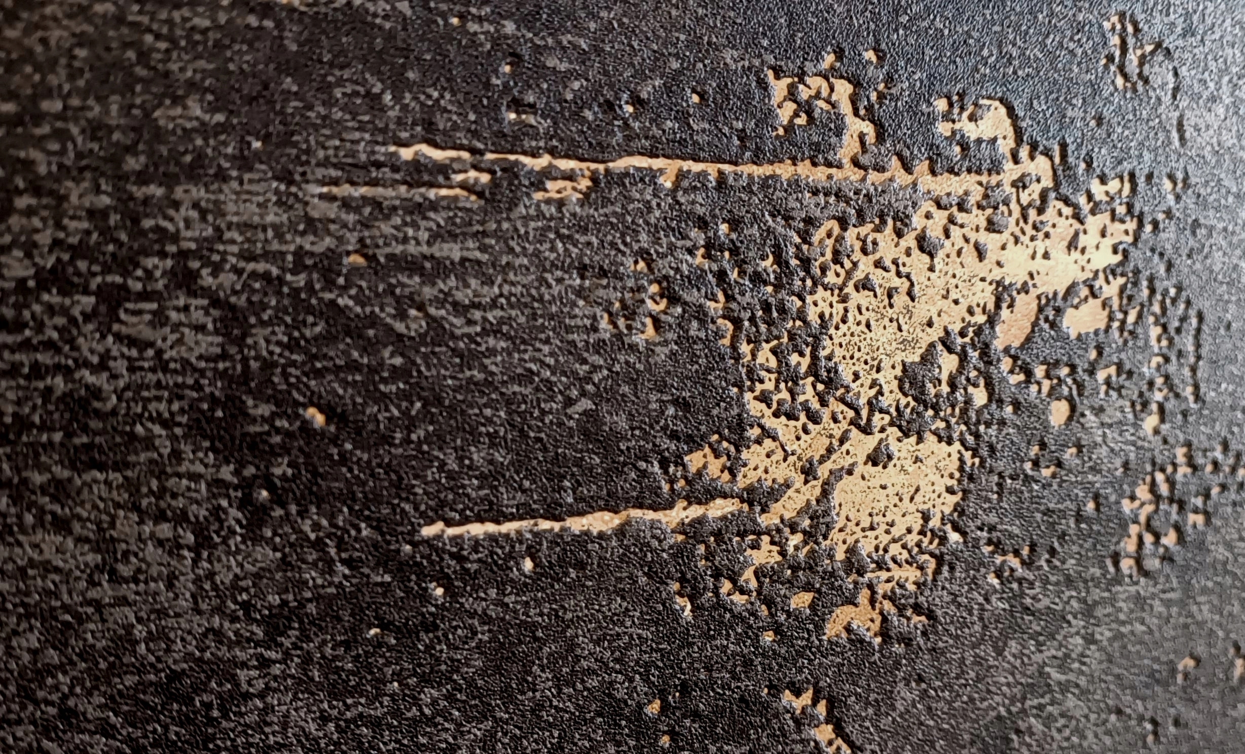 Struktura: delikatnie tłoczona, matowa ,zagłębione przetarcia połyskujące