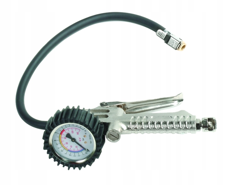 Pistolet z manometrem fi. 63 mm i standardową długością wężyka. Pokazany na poniższym zdjęciu.